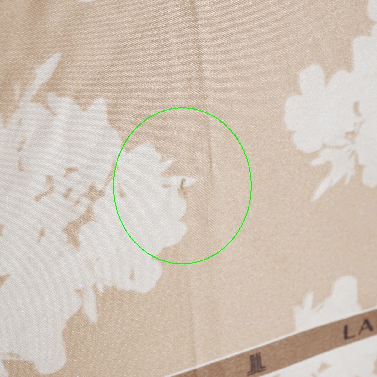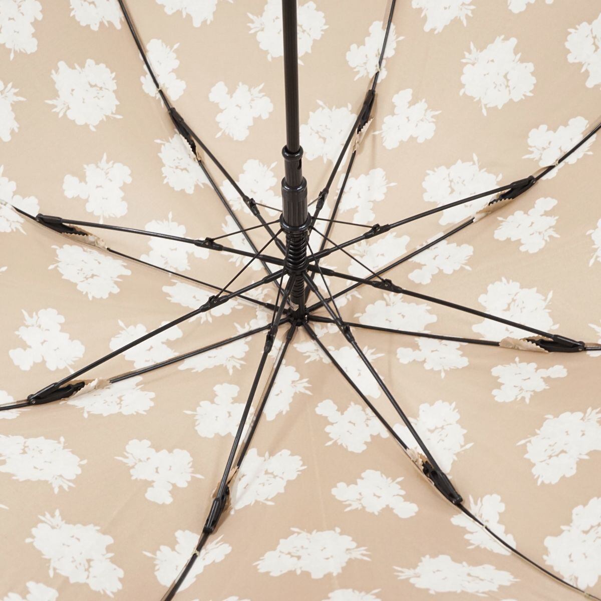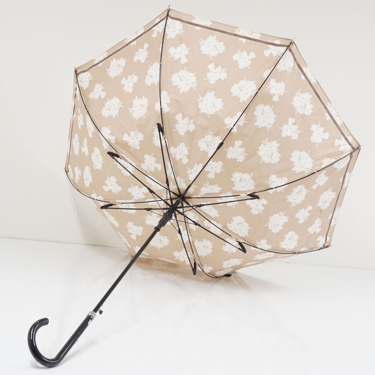 光沢のあるベージュの生地に、フラワーをデザインした「ランバンコレクション」の傘です。