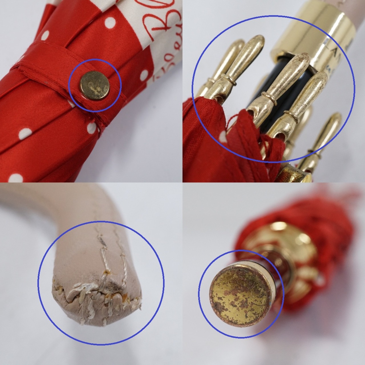 耐風傘 LANVIN en Bleu ランバンオンブルー USED美品 ドット ハート レッド 赤 ジャンプ 60cm A2942