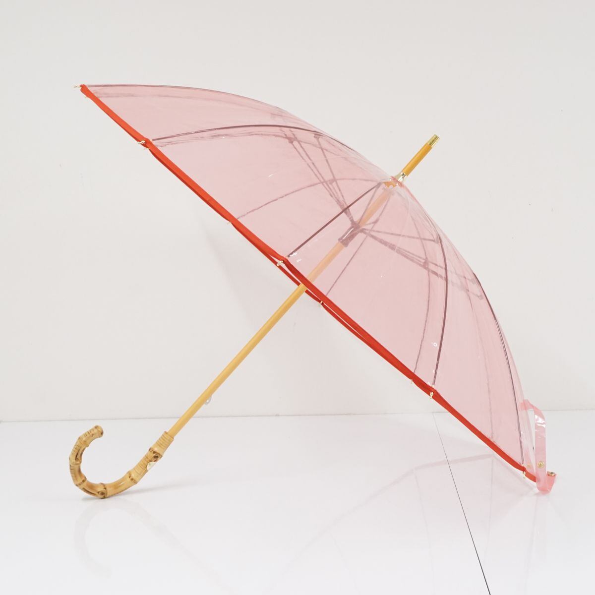 傘 Traditional Weatherwear トラディショナルウェザーウェア USED美品 クリアアンブレラ レッド ビニール傘 高級 55cm KR S0198