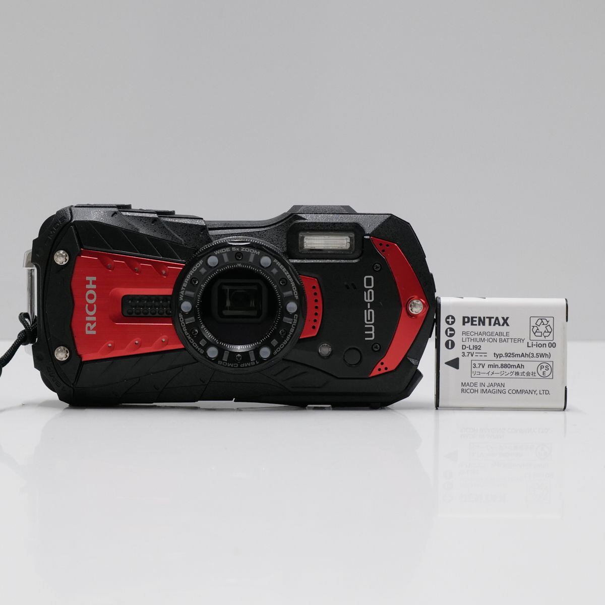 RICOH WG-60 USED超美品 タフカメラ 本体+バッテリー 防水 耐衝撃 耐寒 光学5倍ズーム 完動品 中古 CP5543