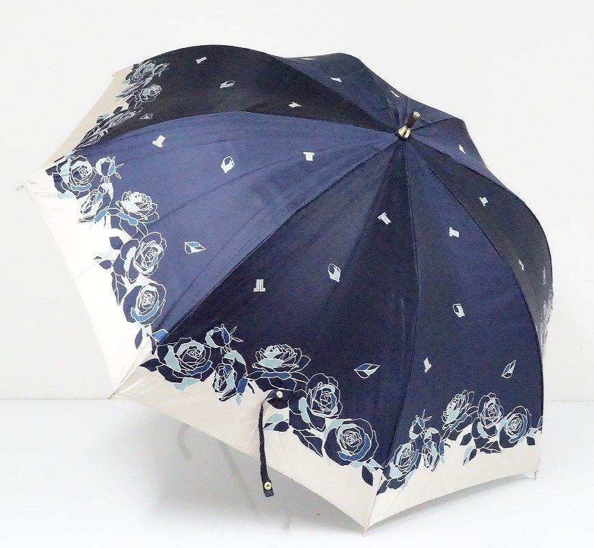 傘 LANVIN COLLECTION ランバン 高級 USED美品 ロゴ フラワー グラス骨 ジャンプ 60cm C A0260