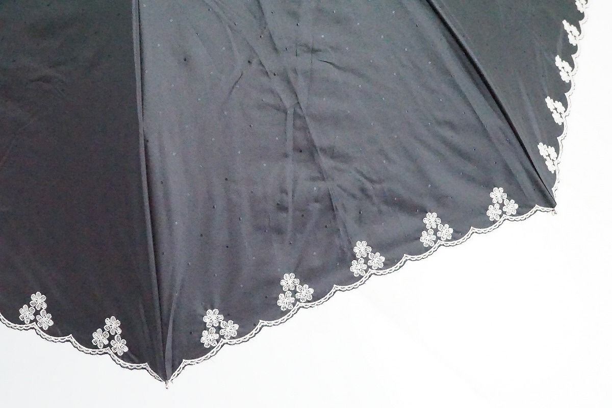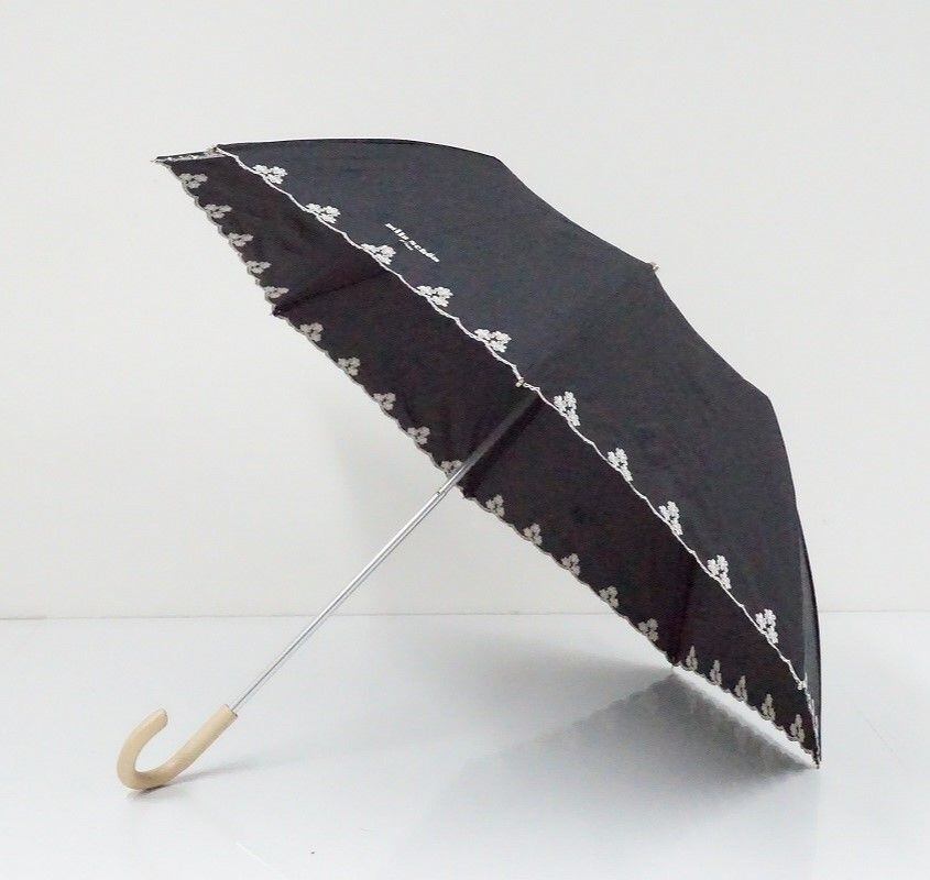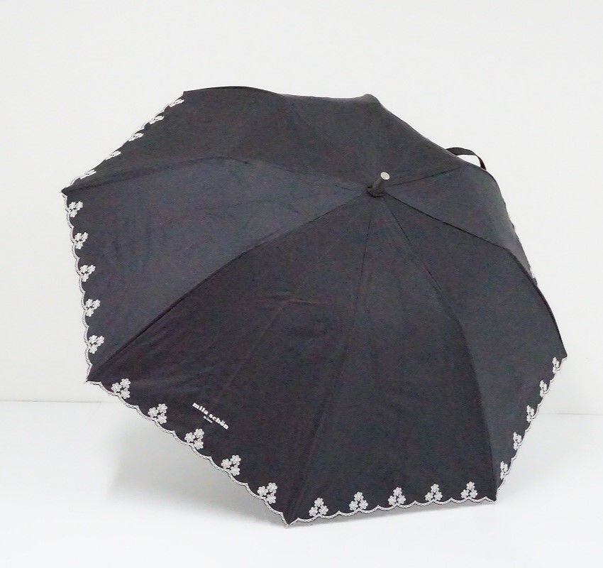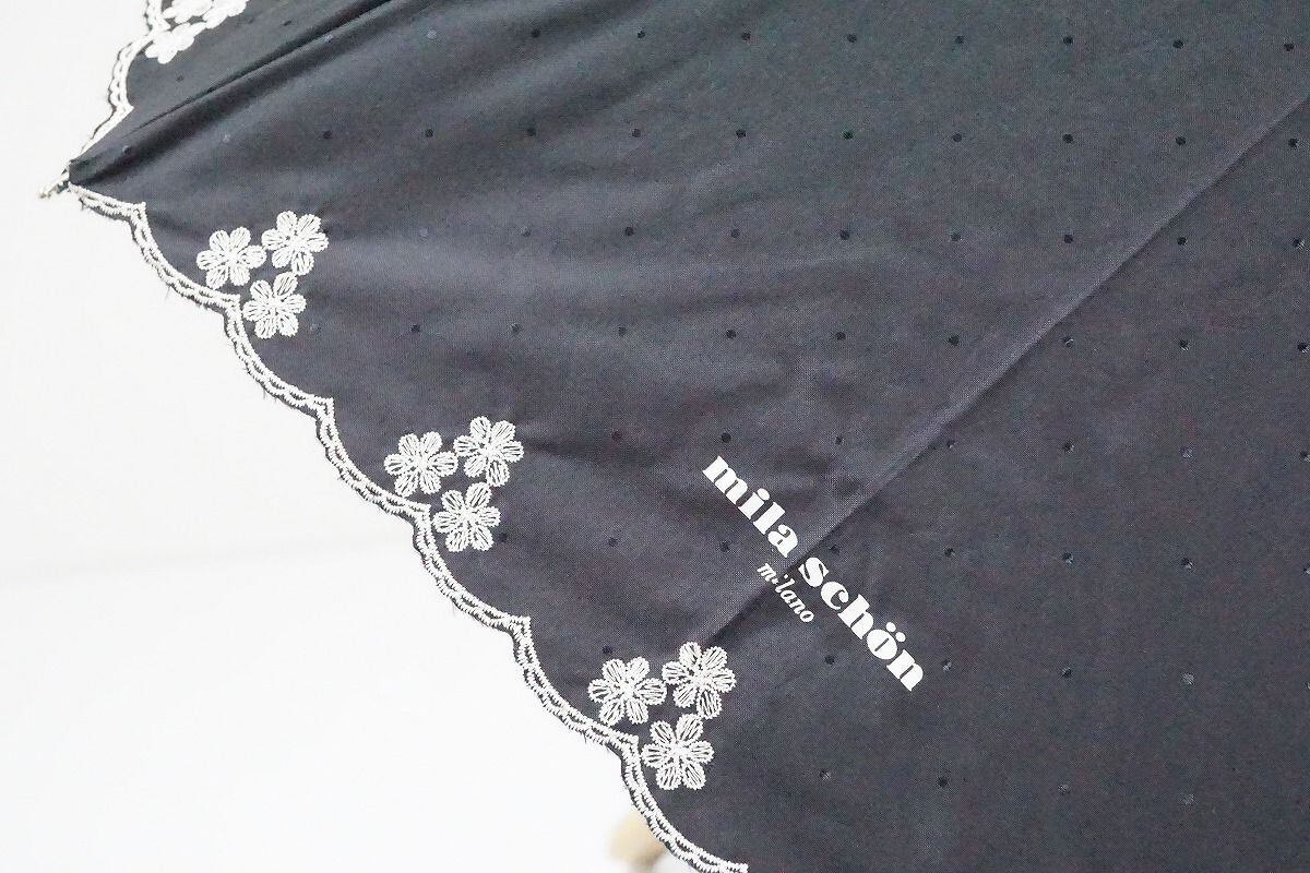 折日傘 mila schon ミラショーン 晴雨兼用折日傘 USED美品 ブラック フリル 花刺繍 ドット UV 遮光 50cm C FA8374