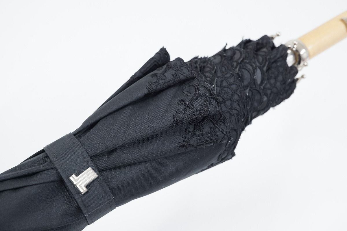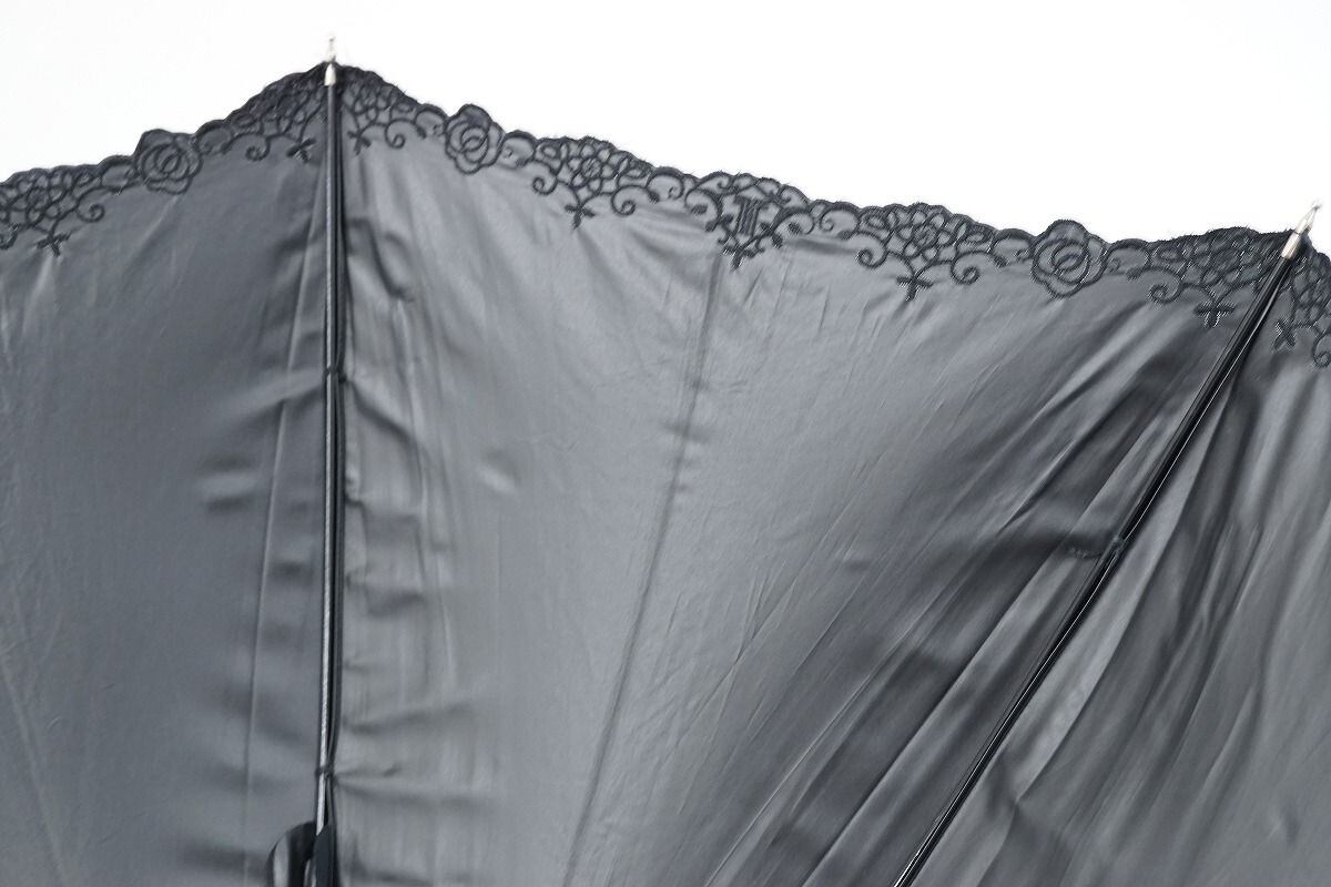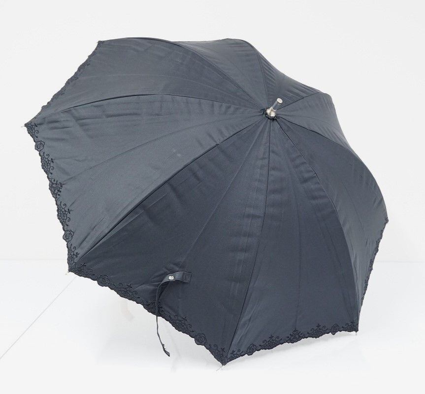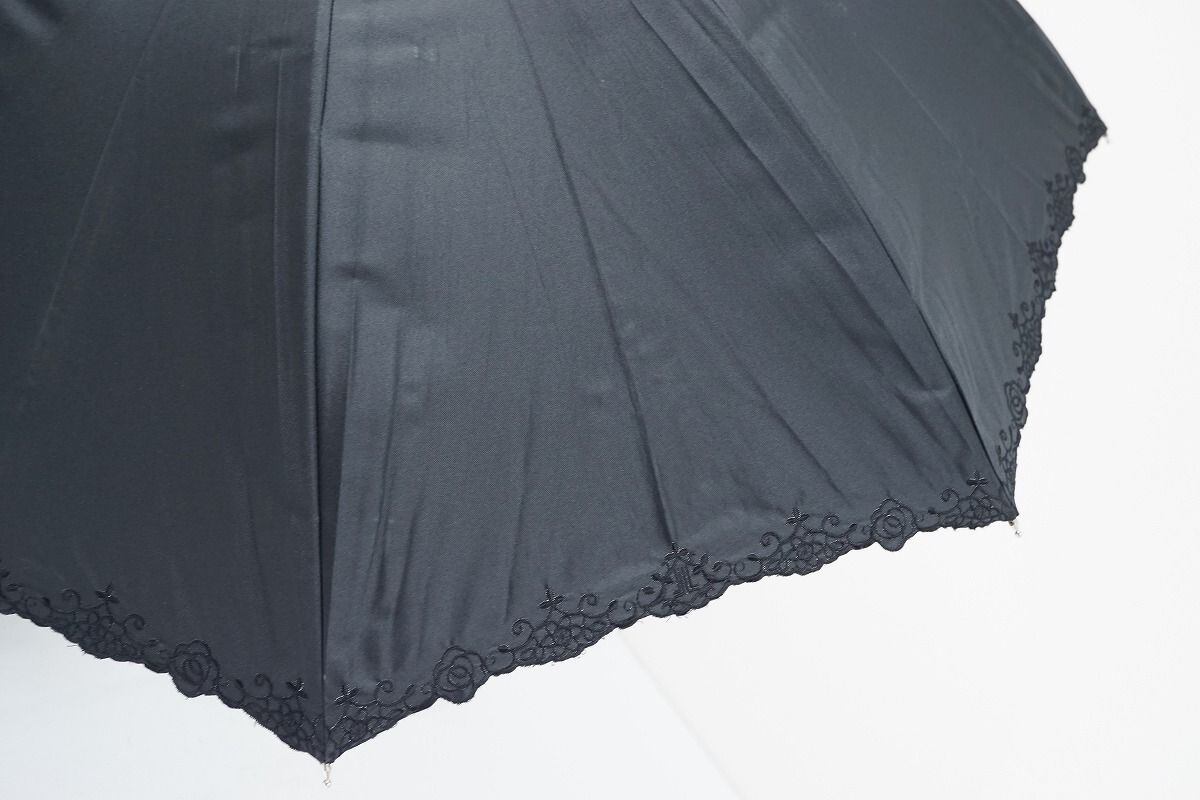 日傘 LANVIN COLECCTION ランバン 晴雨兼用日傘 USED美品 刺繍 フラワーモチーフ 遮光 UV グラス骨 47cm C A0278