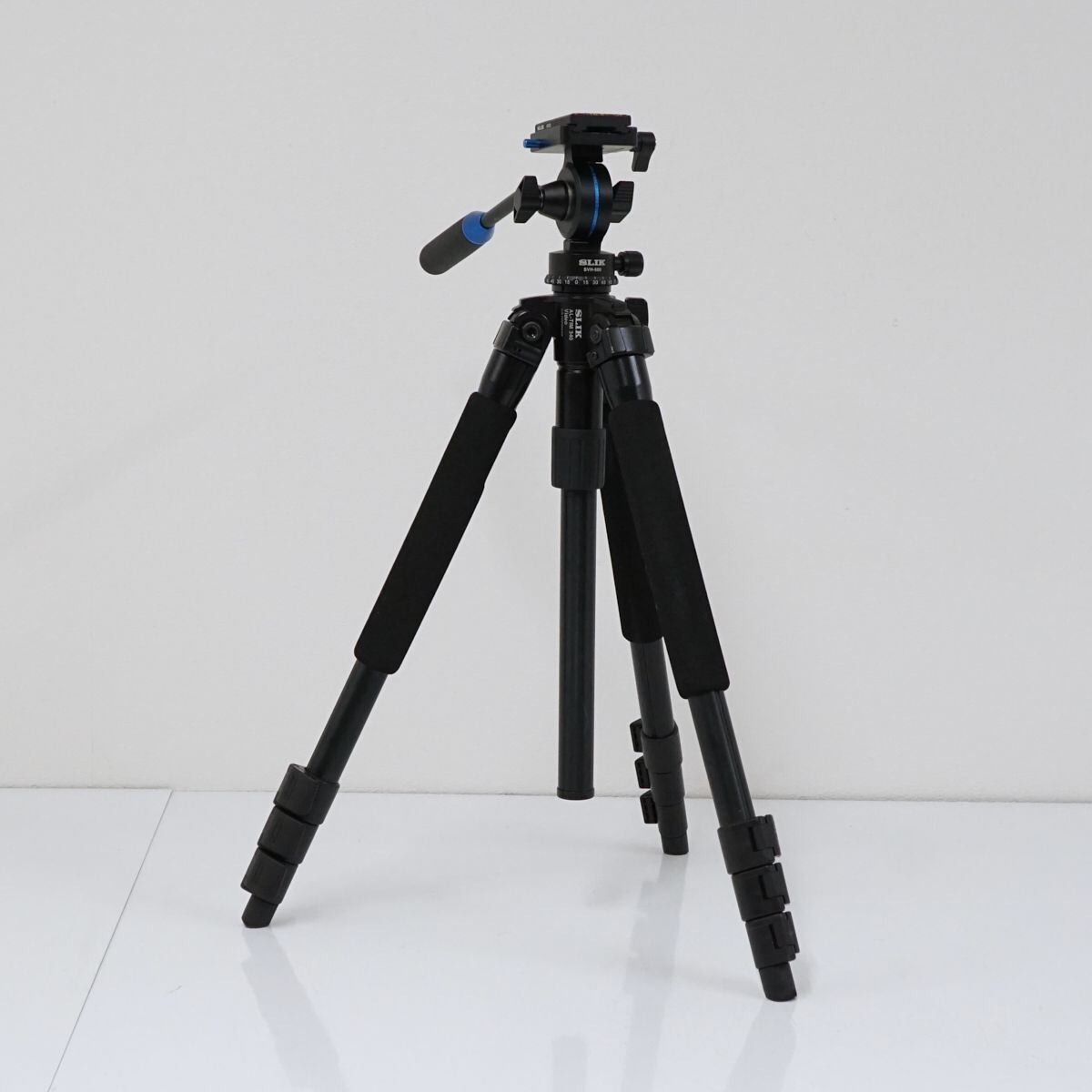 SLIK AL-TIM 340 Video 三脚 USED美品 スリック アル・ティム 340 高精度アルミ雲台 SVH-500 AMT ローポジ対応 4段 写真 動画 中古 CE2327
