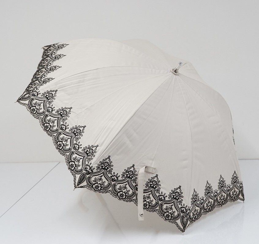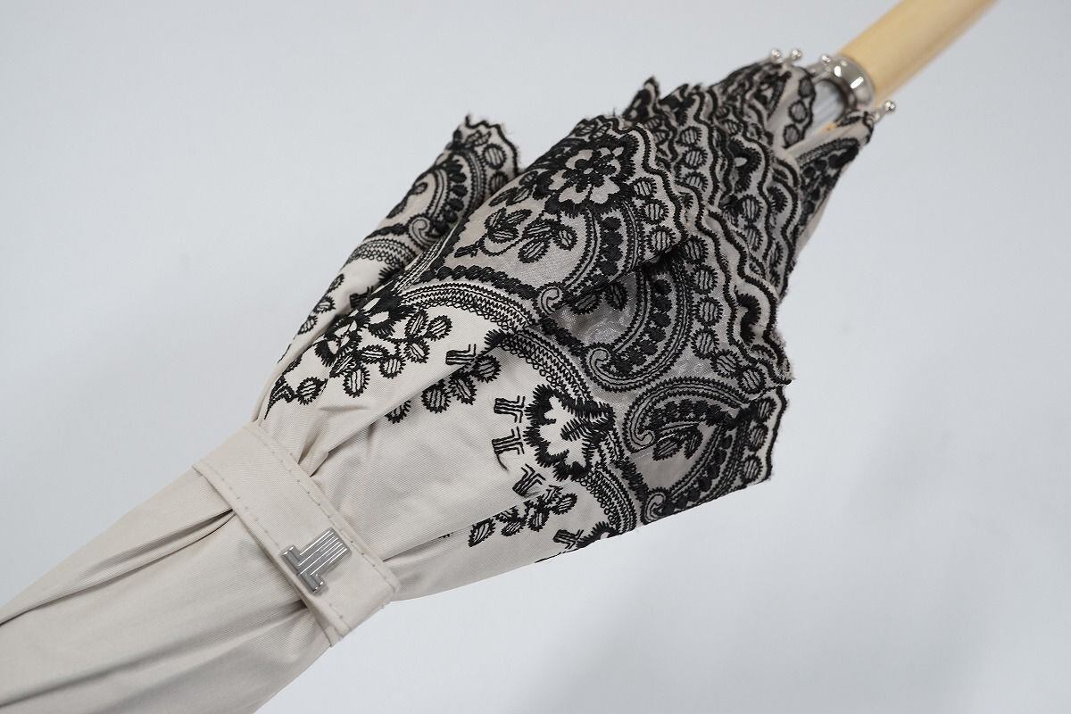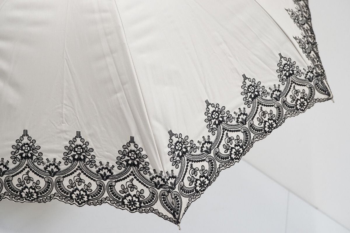 日傘 LANVIN COLECCTION ランバン 晴雨兼用日傘 USED美品 フラワーモチーフ刺繍 遮光 UV 50cm C S0288