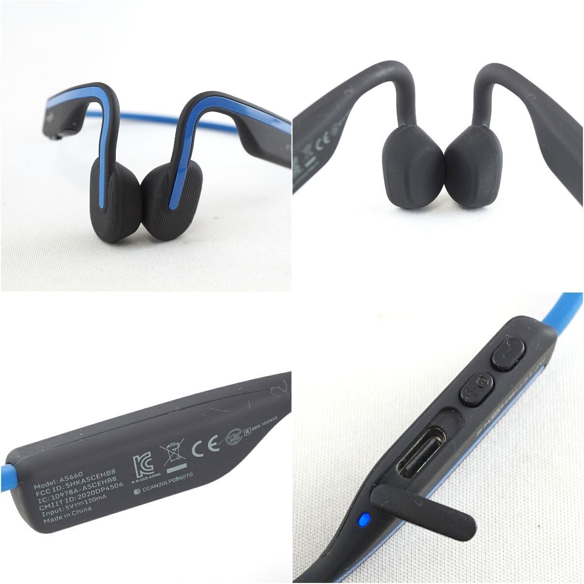 AfterShokz OpenMove 骨伝導イヤホン USED美品 AFT-EP-000024 AS660 エレベーションブルー 耳を塞がない IP55 防水 マイク 完動品 V1674