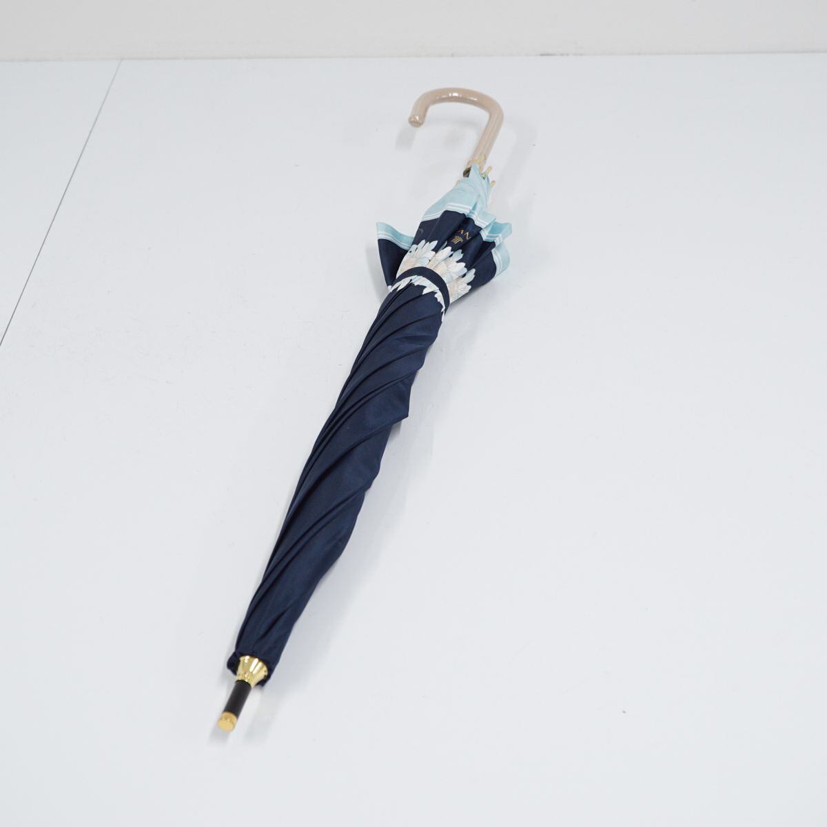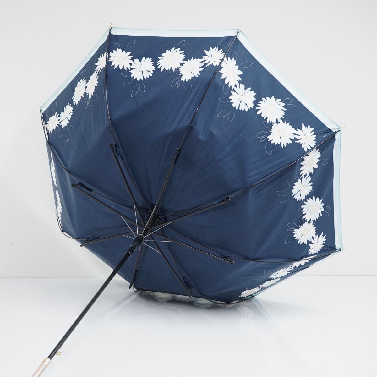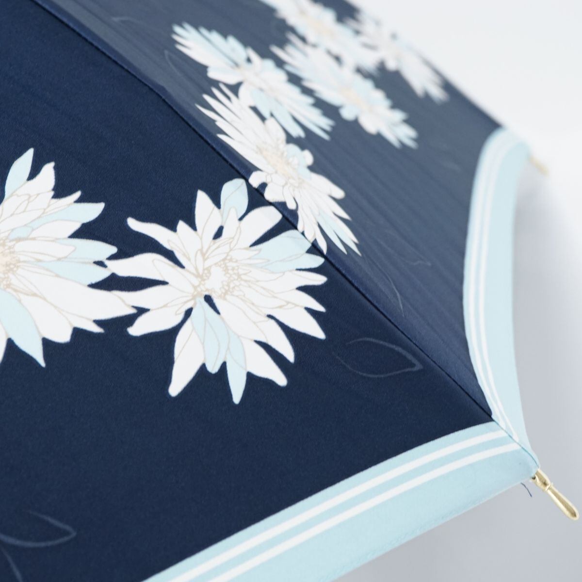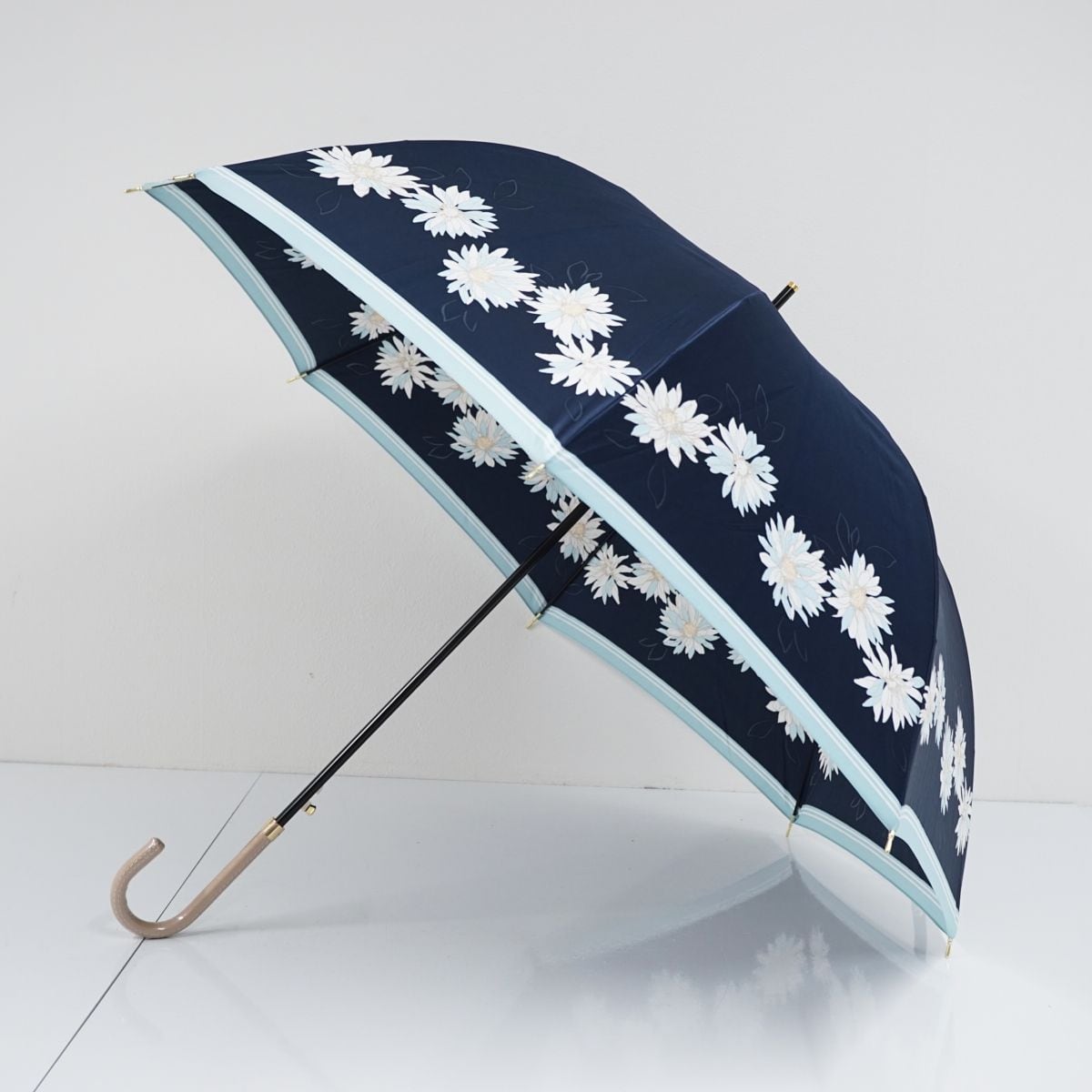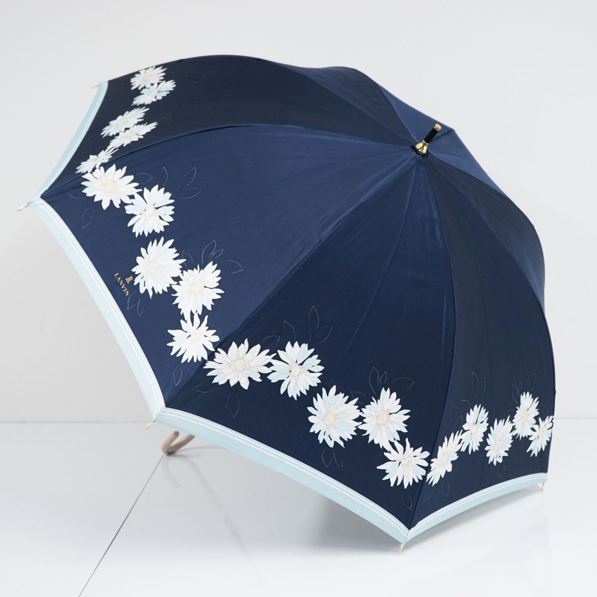 ネイビーをベースに、淡いカラーのフェミニンなフラワーを描いた「ランバンオンブルー」のアンブレラです。
