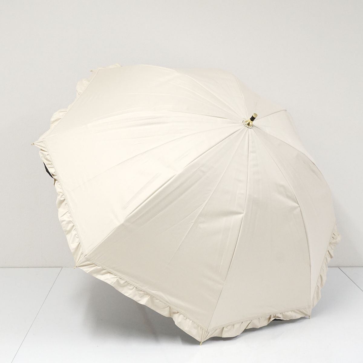 完全遮光日傘 UVO Wpc. ウーボ USED品 無地 フリル 8本骨 UV 遮光 遮熱 最強の日傘 大きめ シンプル 軽量 ベージュ 55cm A0904
