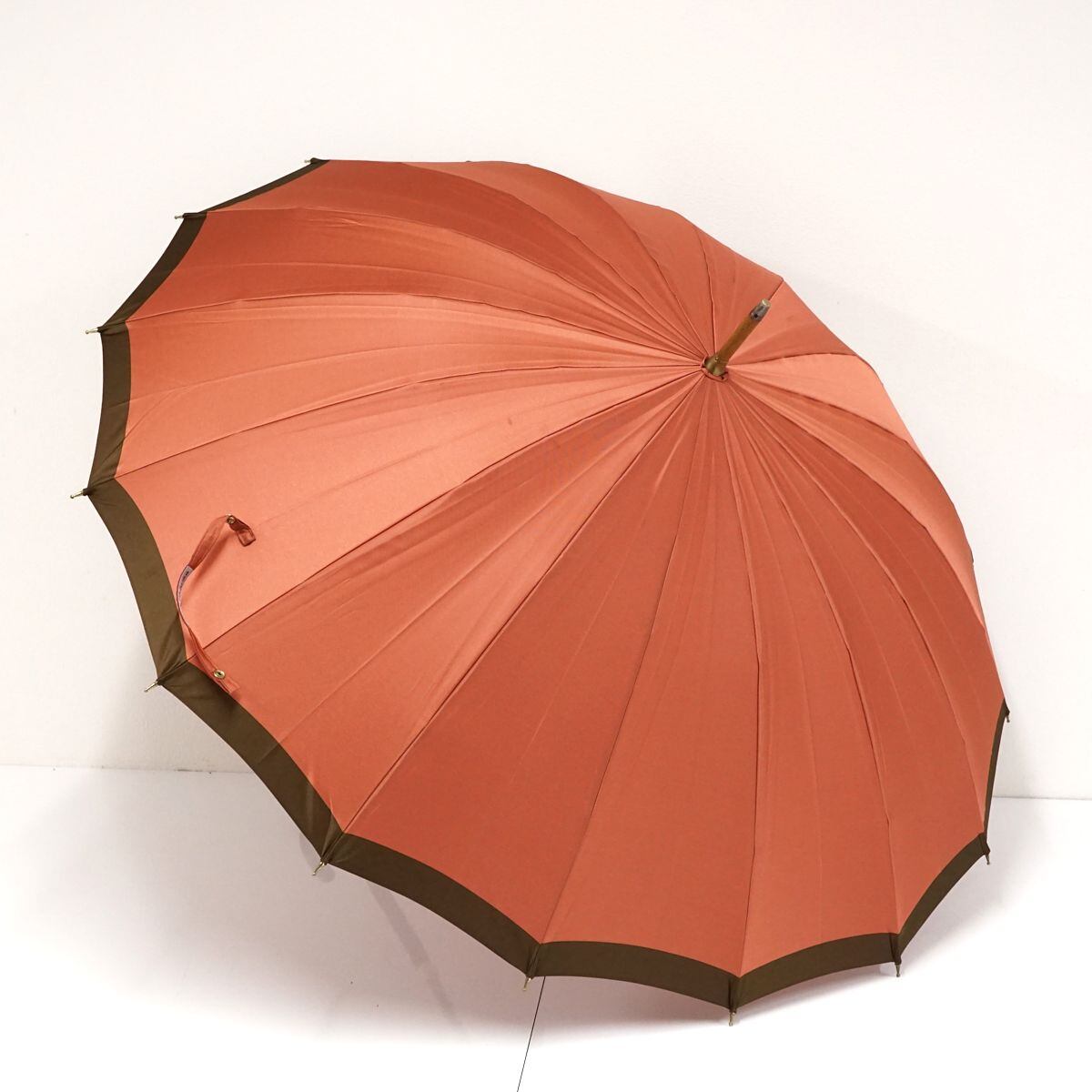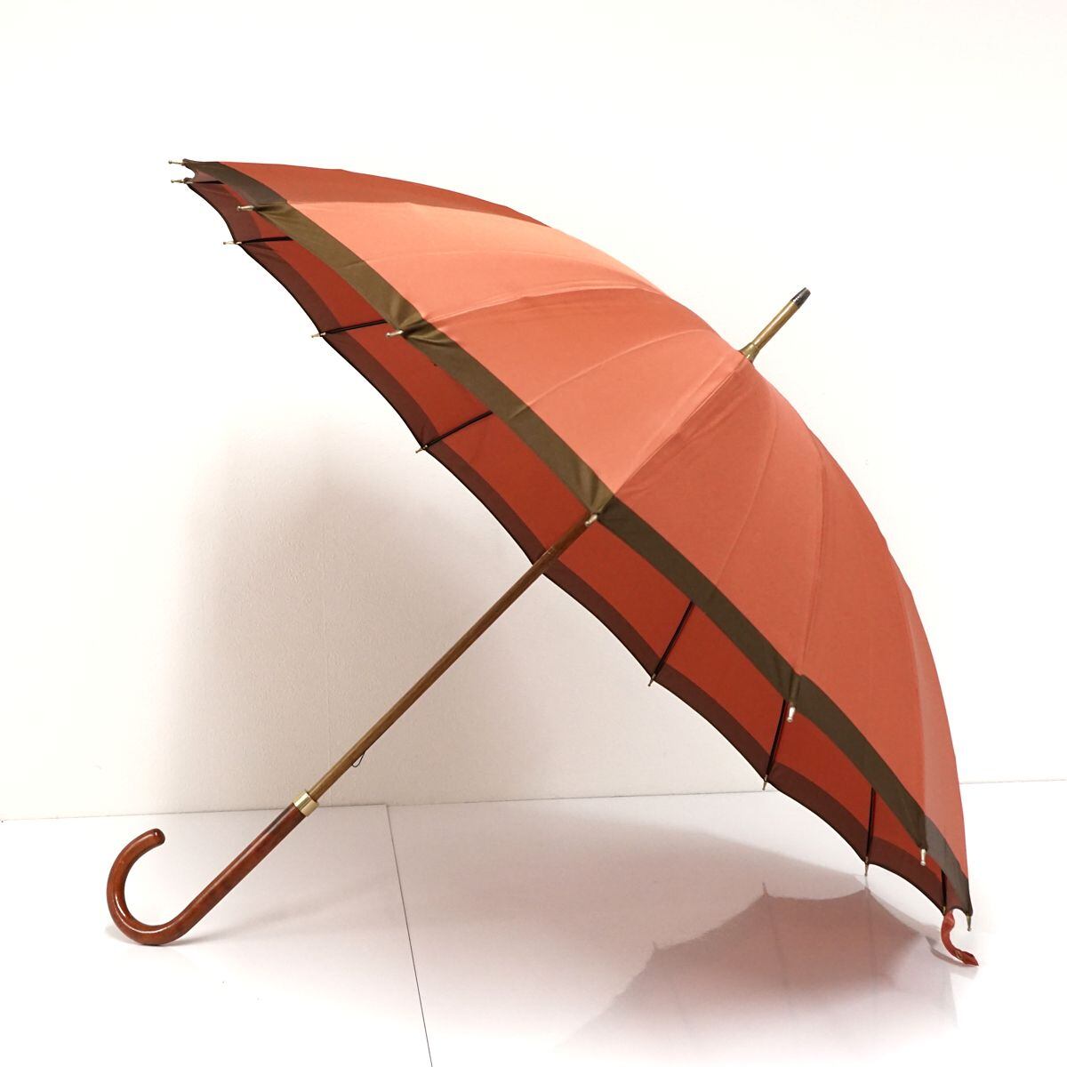 高級傘 前原光榮商店 USED品 ボーダー 16本骨 多間 日本製 老舗 天然木手元 上品 エレガント 55cm S S0096