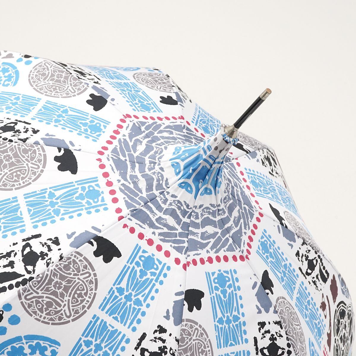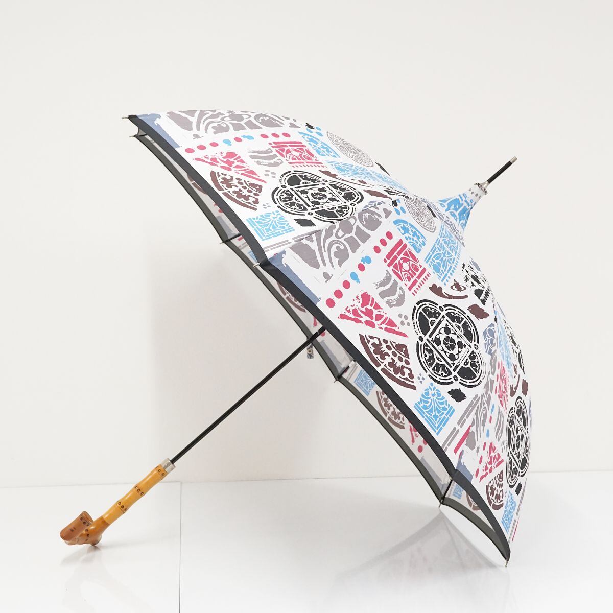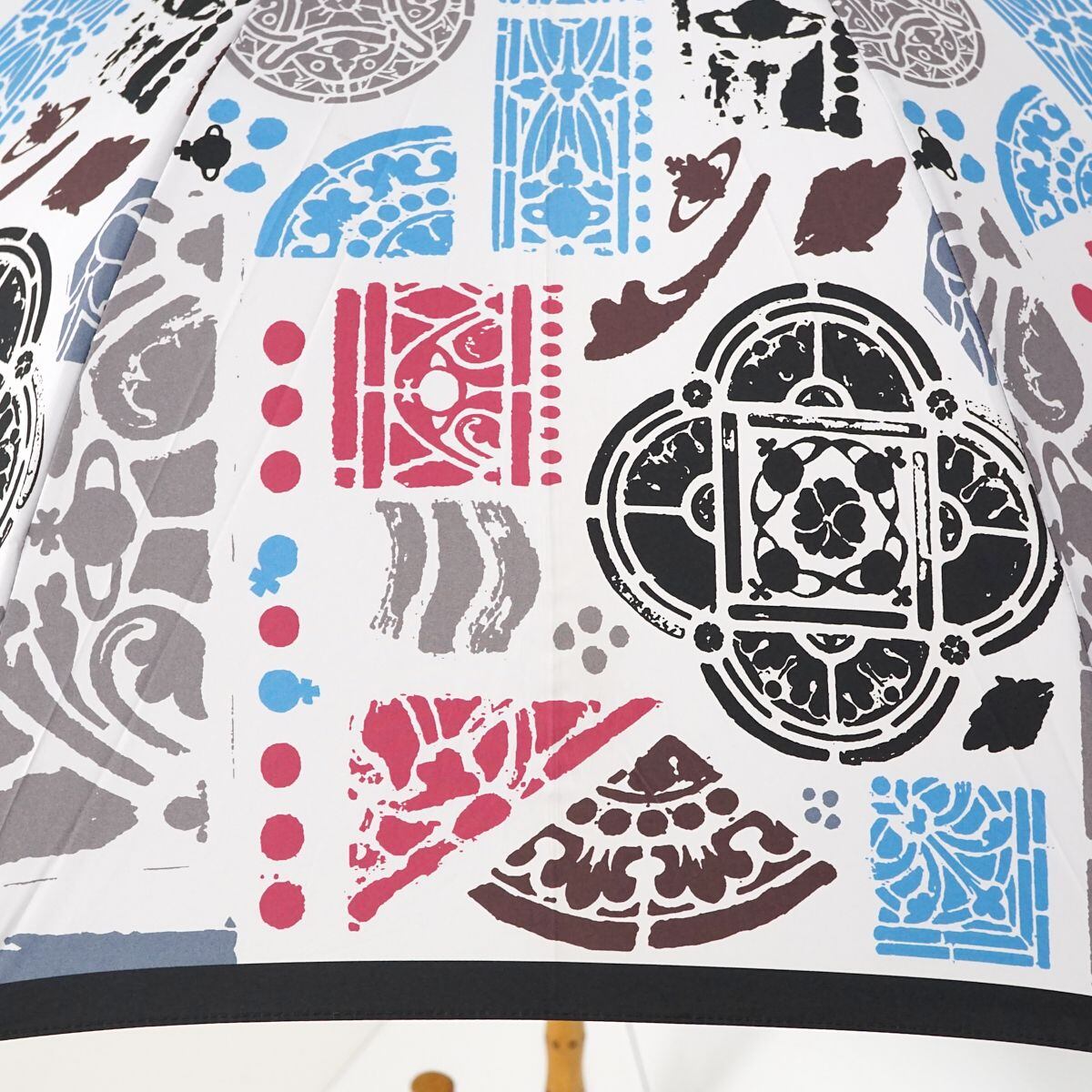 ホワイトの生地に様々なカラーでアートを描いたPOPなデザインのアンブレラです。
