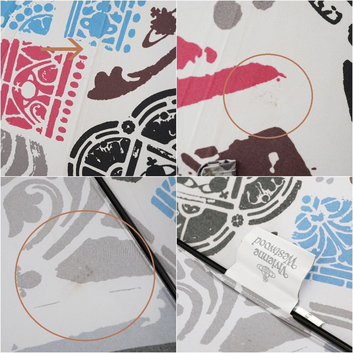 パゴダ傘 Vivienne Westwood ヴィヴィアンウエストウッド USED品 ホワイト マルチカラー アート オーブ ORB ステッキ型 57cm S S0097