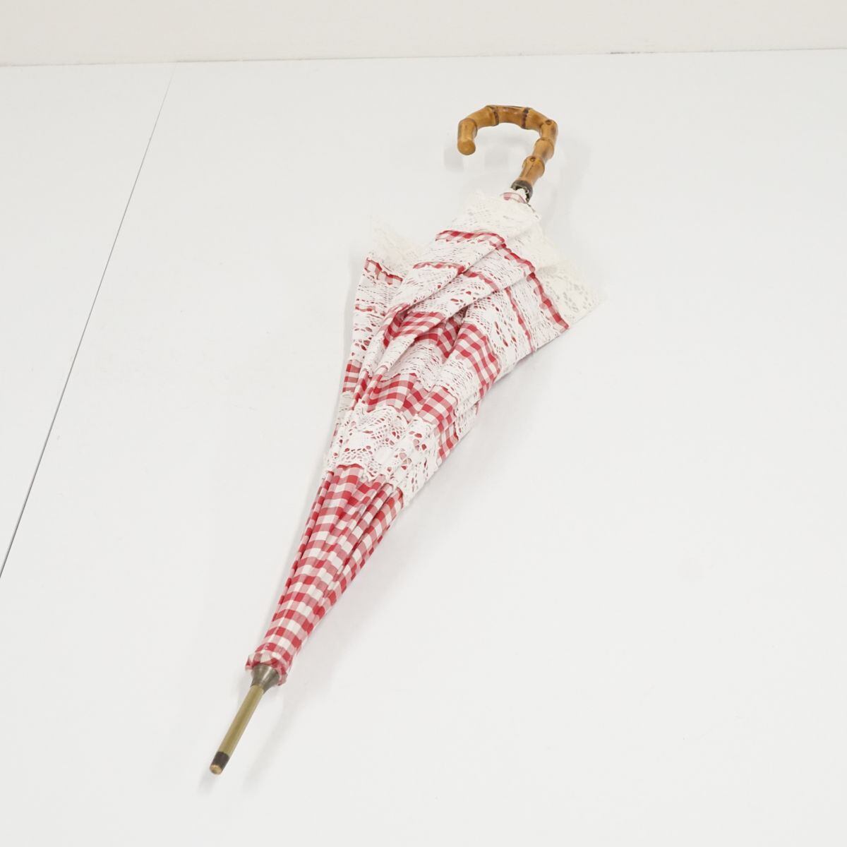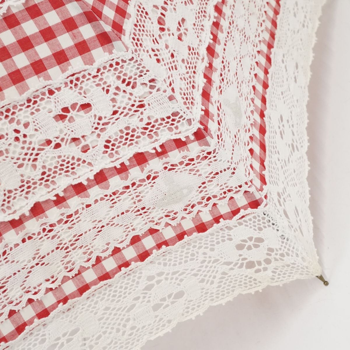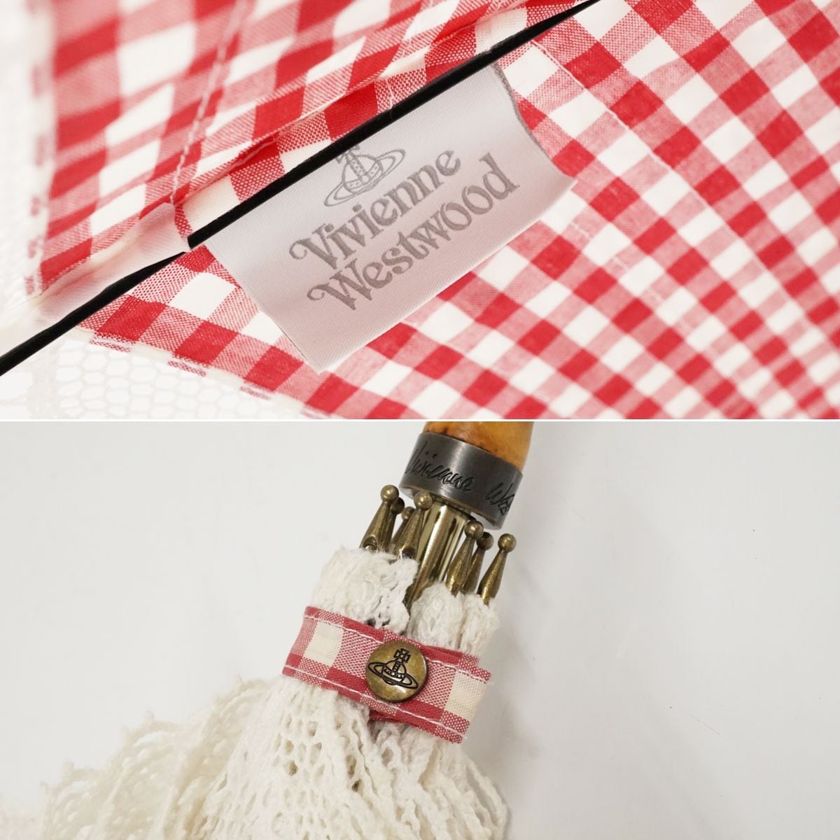 日傘 Vivienne Westwood ヴィヴィアンウエストウッド USED品 パゴダ チェック レース レッド UV 47cm KR A0301