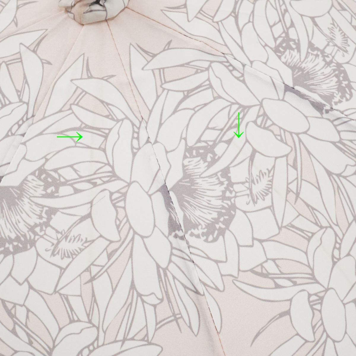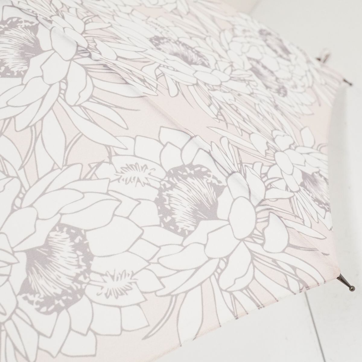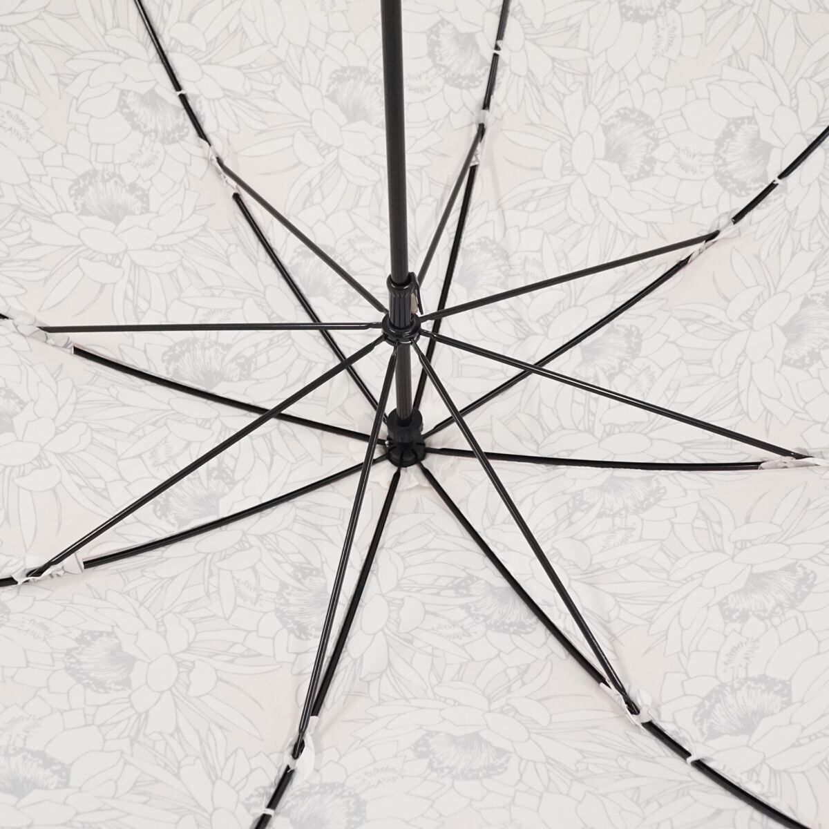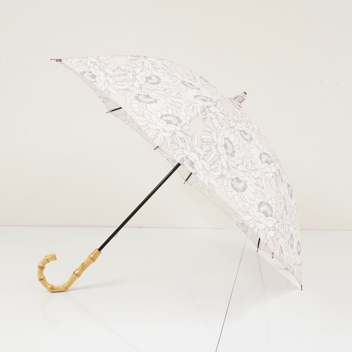 優しい色合いの薄ピンクの生地に月下美人をふんだんに散らした、上品な雰囲気の日傘です。