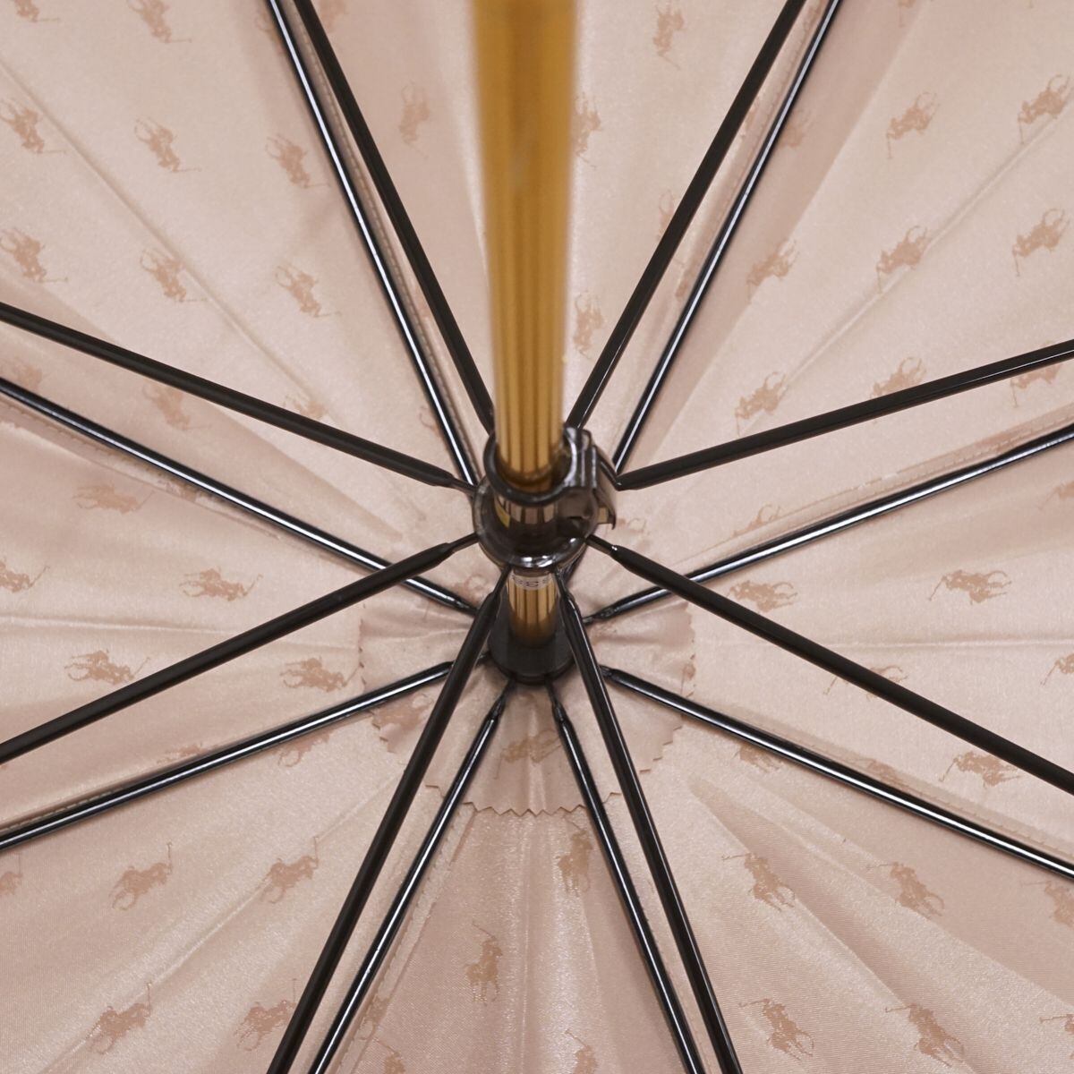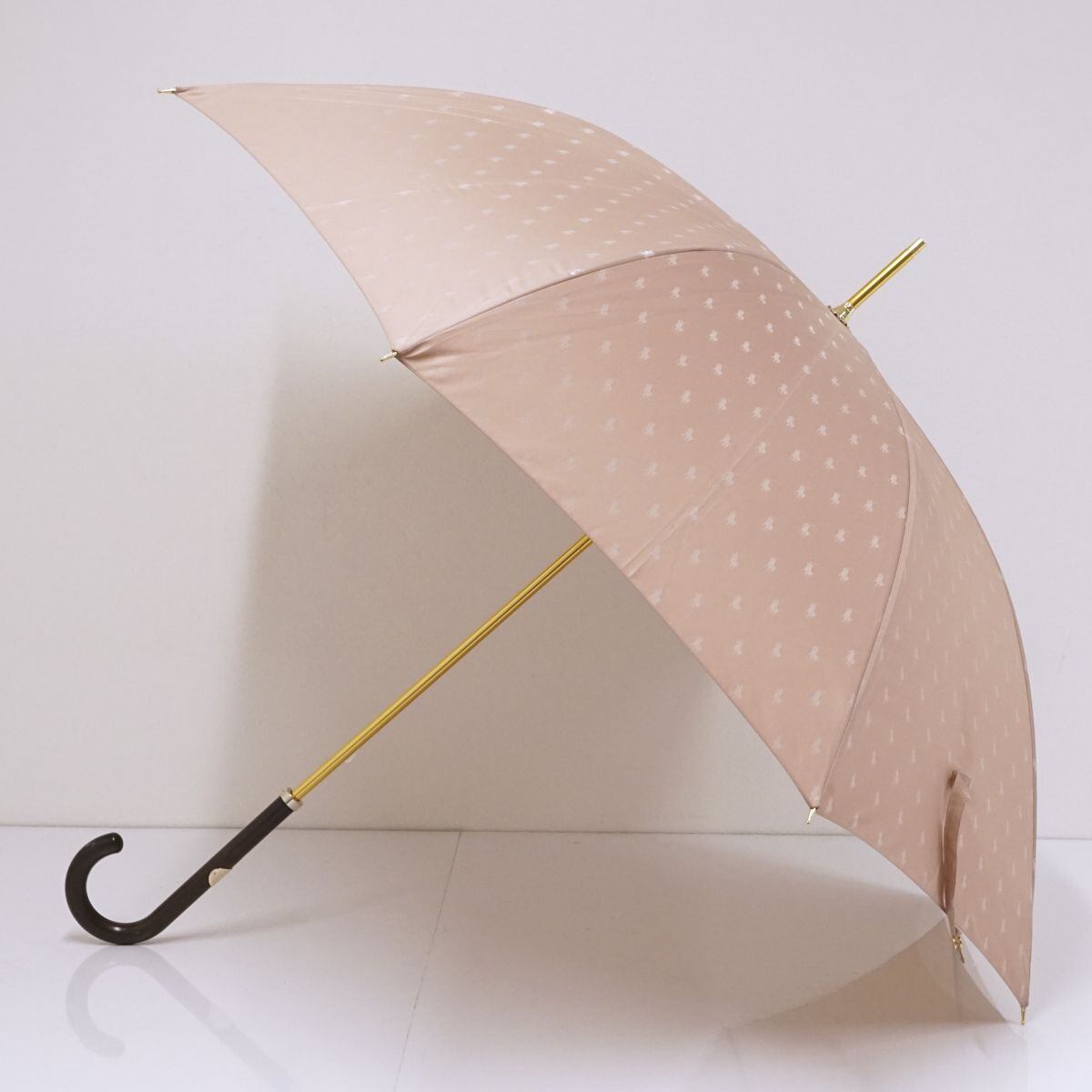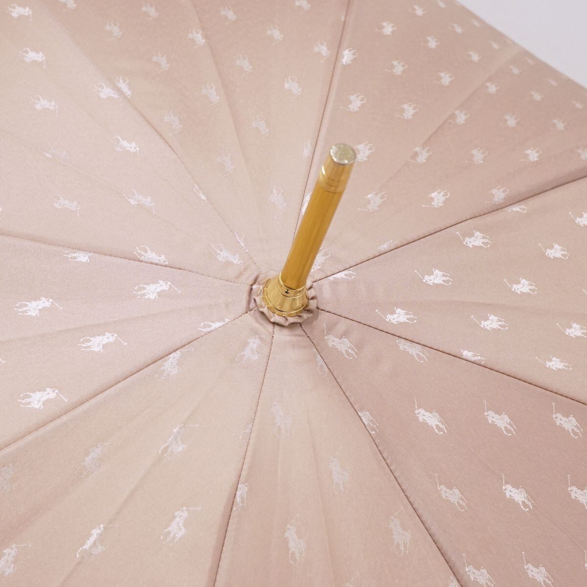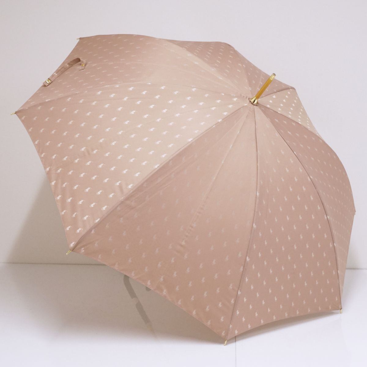 Polo Ralph Lauren ポロラルフローレン 傘 USED美品 ジャガード ポロドット ピンク ベージュ ロゴプレート 60cm S1346