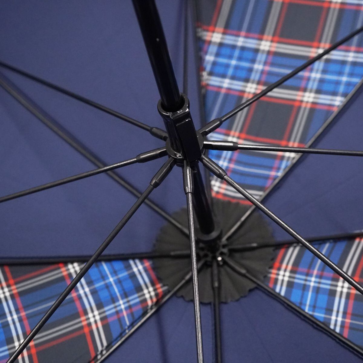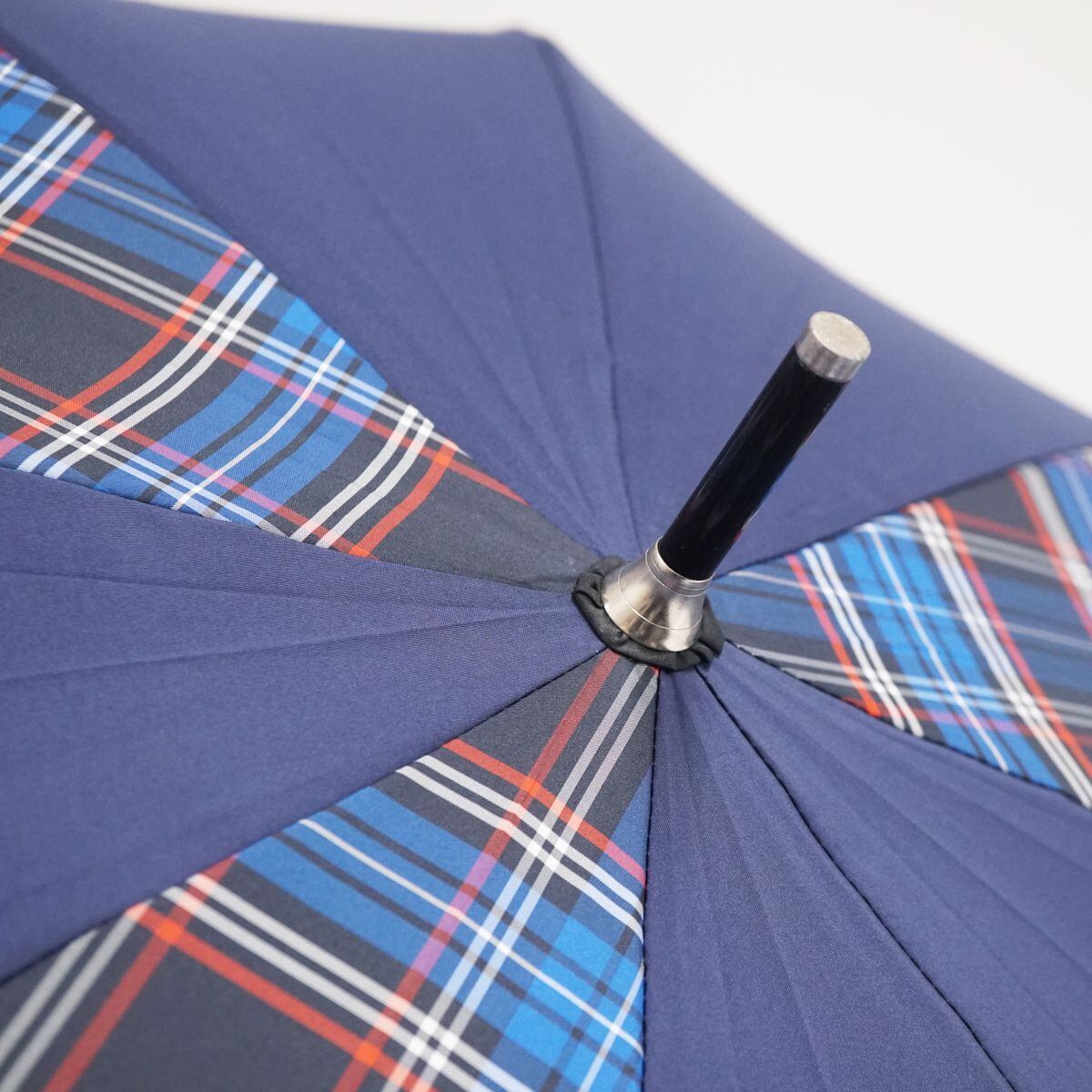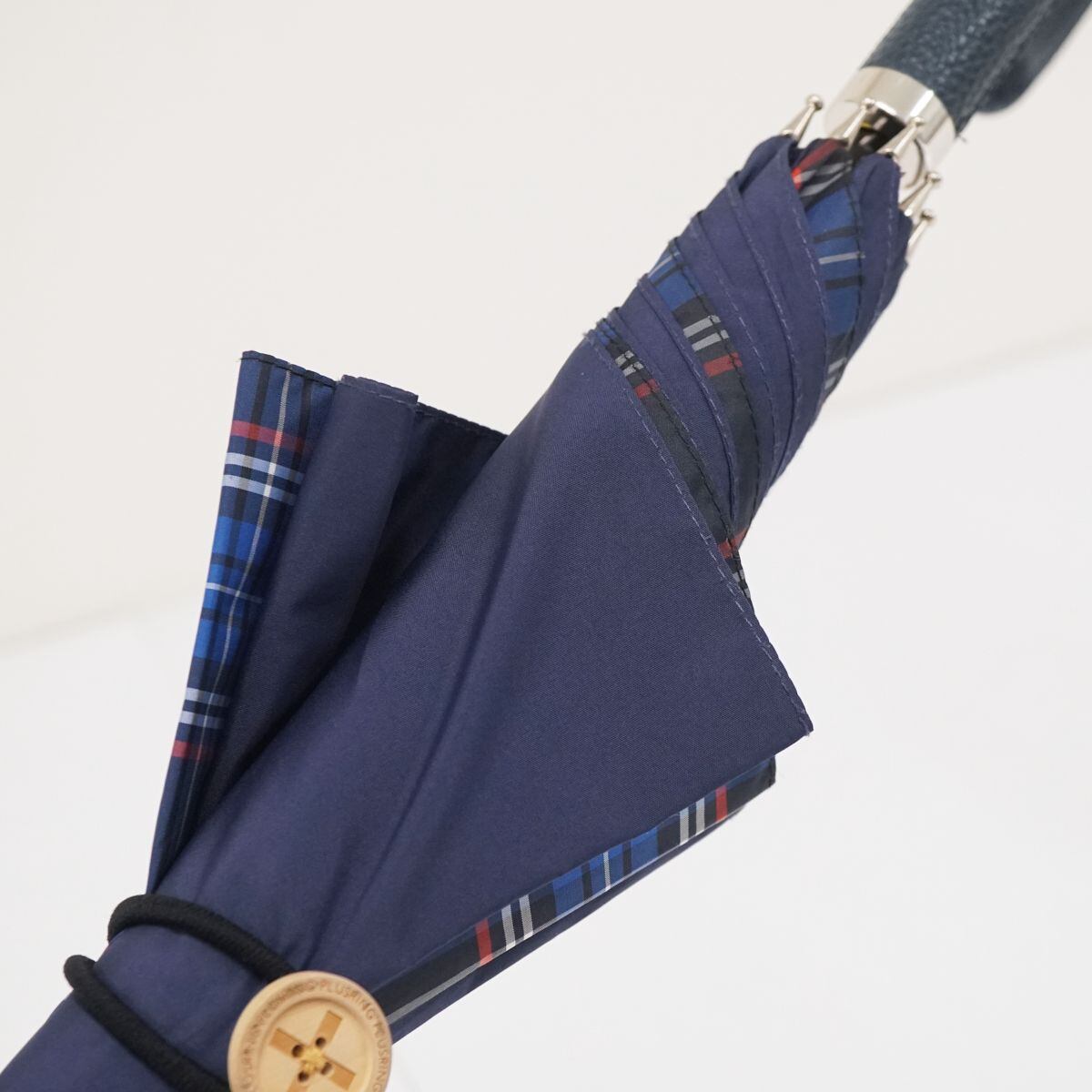 RING プラスリング 傘 USED美品 チェック×無地 ネイビー系 手元レザー カジュアル 60cm T A0321