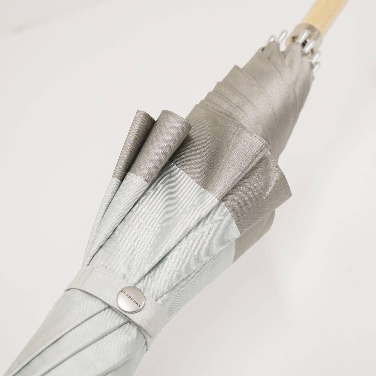 Burberrys バーバリー 高級傘 USED美品 ブランドロゴ バーバリーチェック ブラウン グラス 木製手元 T S9217