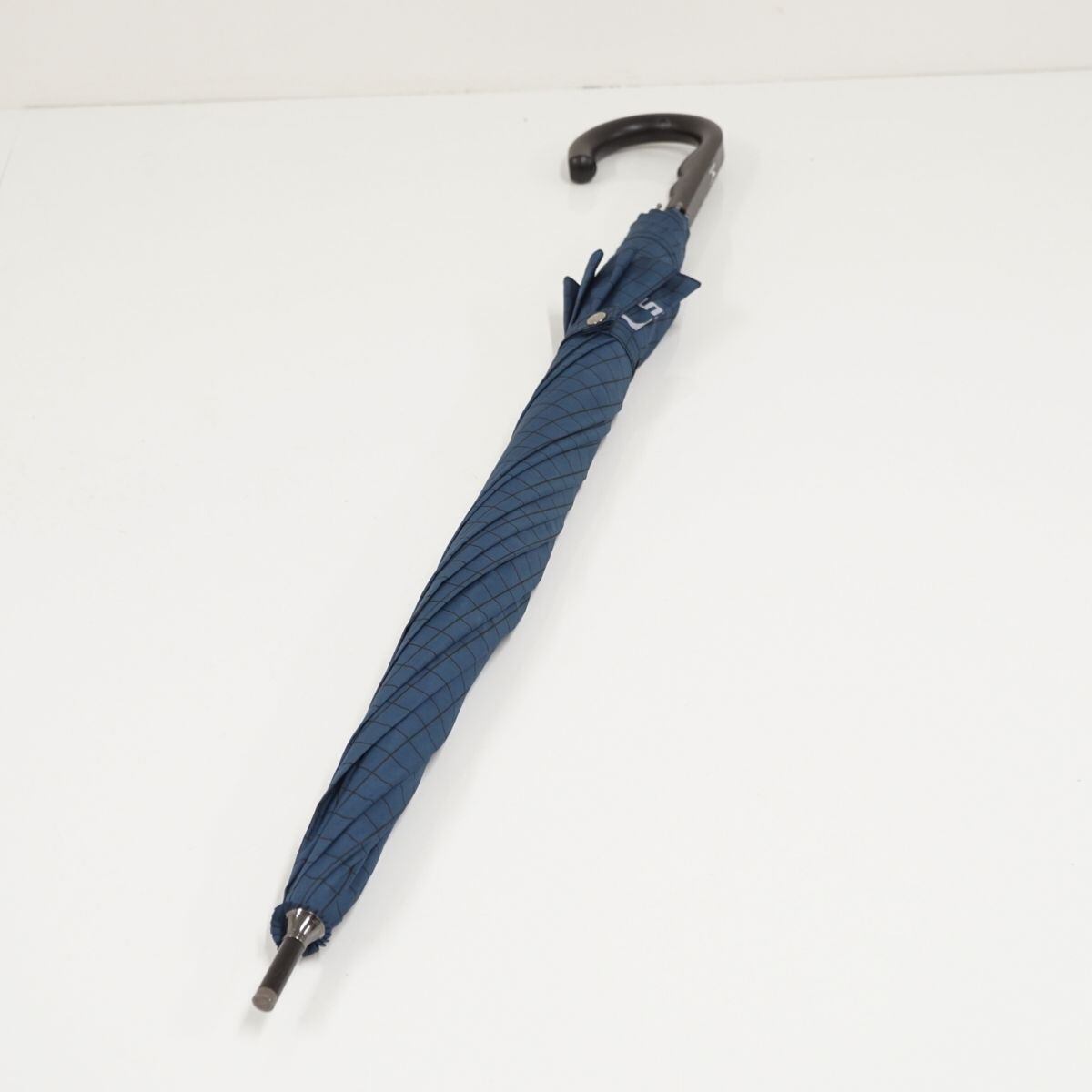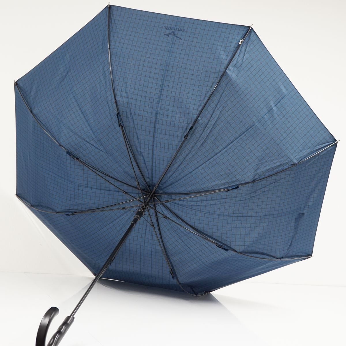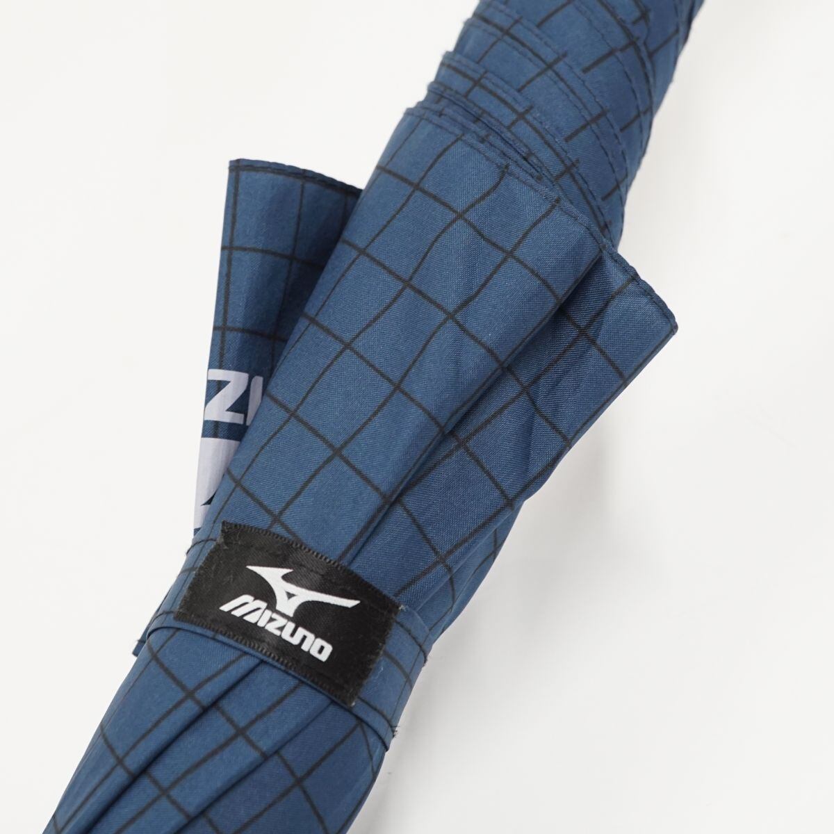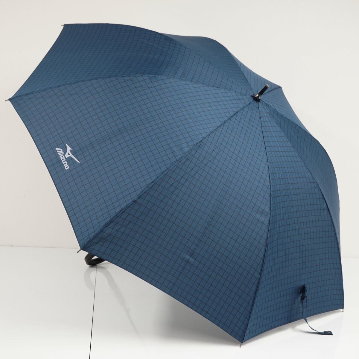 傘 MIZUNO ミズノ USED美品 格子柄 ダークブルー 耐風 紳士傘 グラスファイバーフレーム ジャンプ 超大判 70cm KR A0329