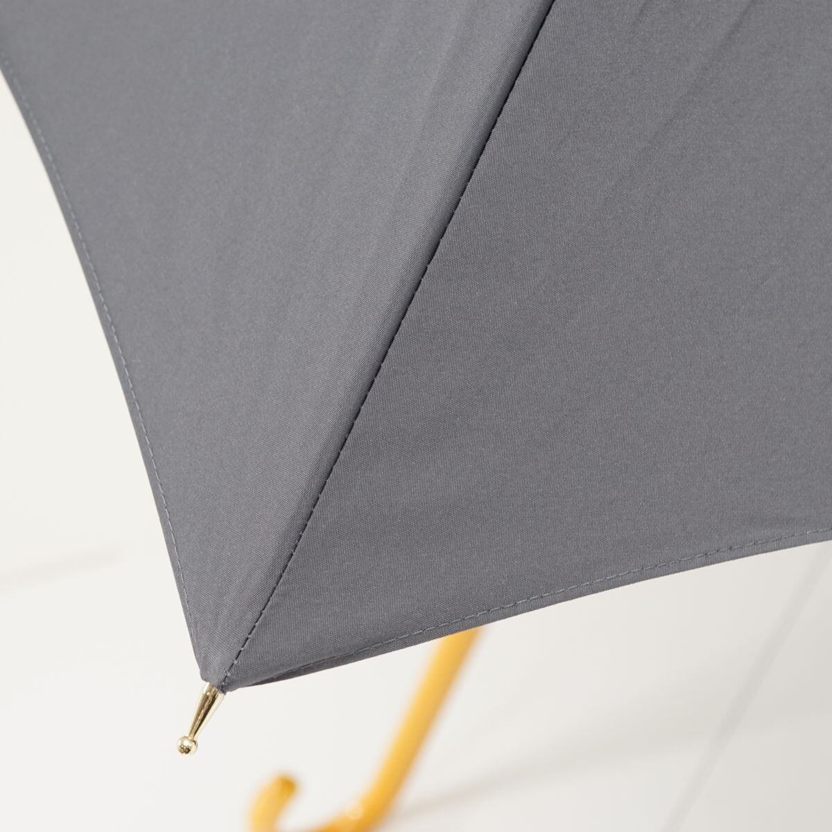 グレーの無地生地をリズミカルなフォルムでデザインし、イエロー系のレザー(合皮)ハンドルを合わせた個性的な一本です。
