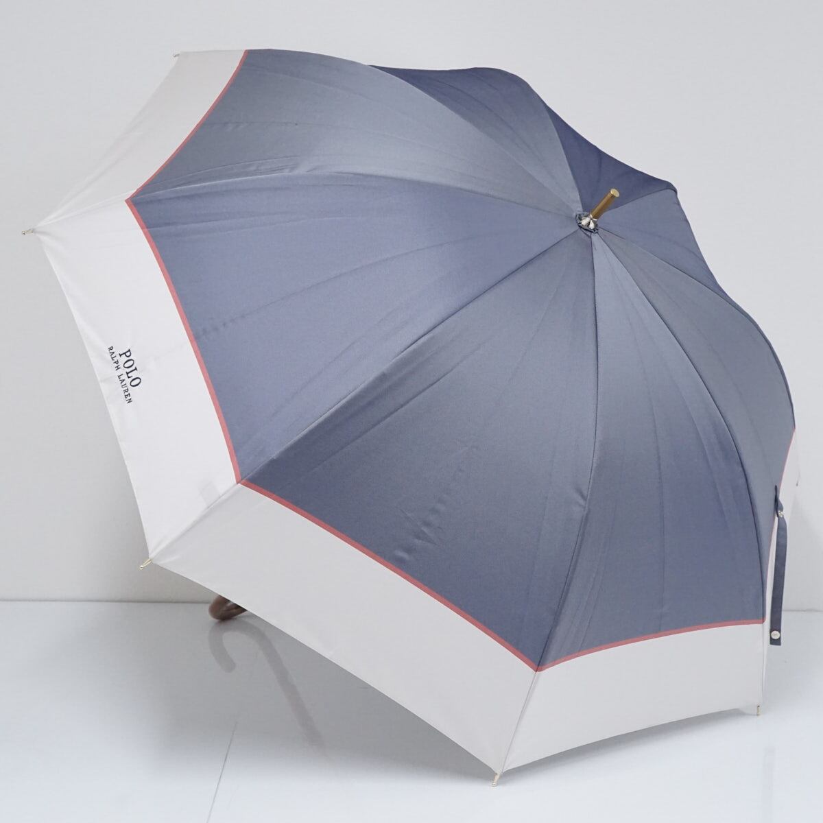 傘 POLO RALPH LAUREN ポロ ラルフ ローレン USED美品 バイカラー ロゴ刺繍 シンプル ネイビーブルー グラス骨 軽量 ブランド 58cm S2560