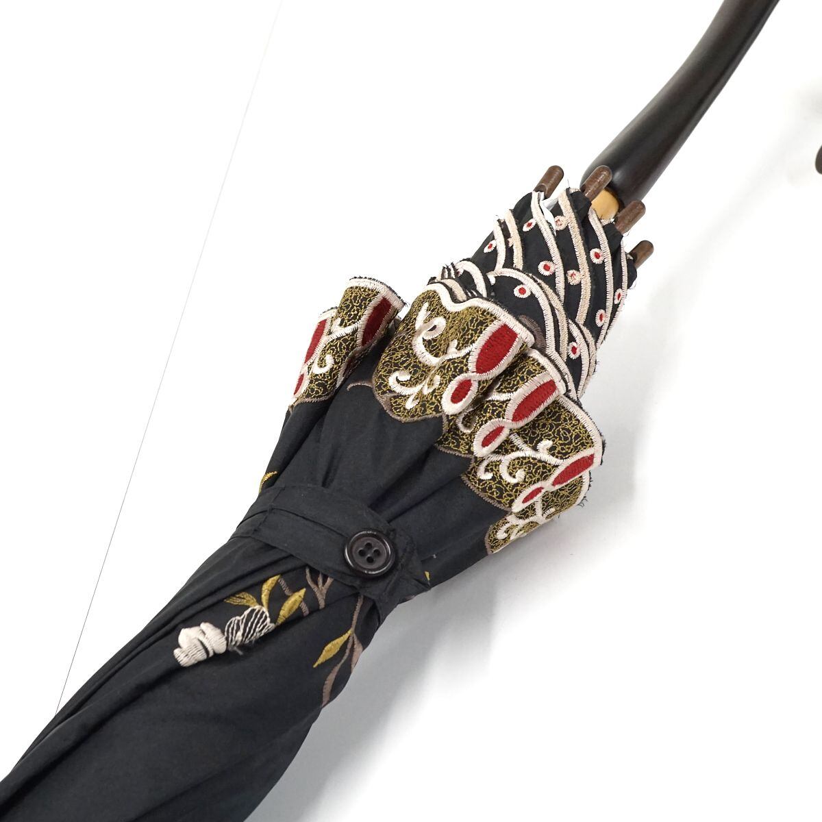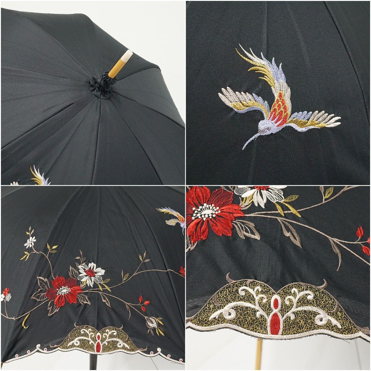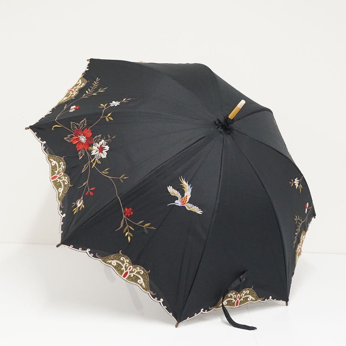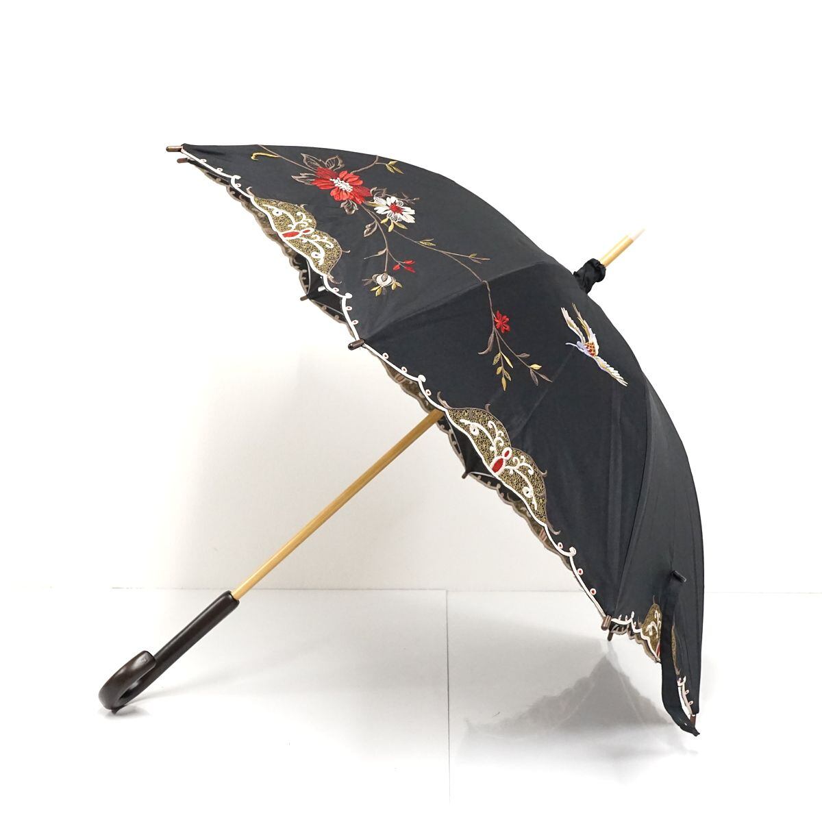晴雨兼用日傘 chinoiserie modern シノワズリーモダン USED美品 ブラック 花鳥 ハチドリ 刺繍 かわず張 女優日傘 遮光 遮熱 47cm S0347