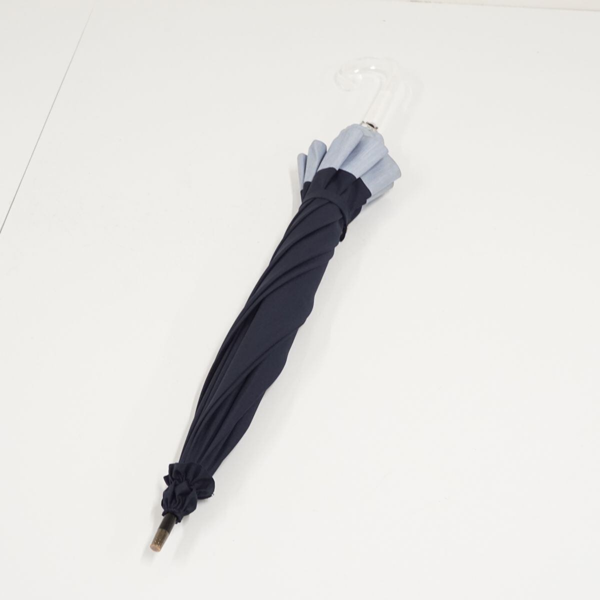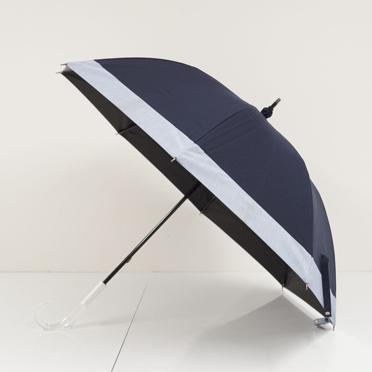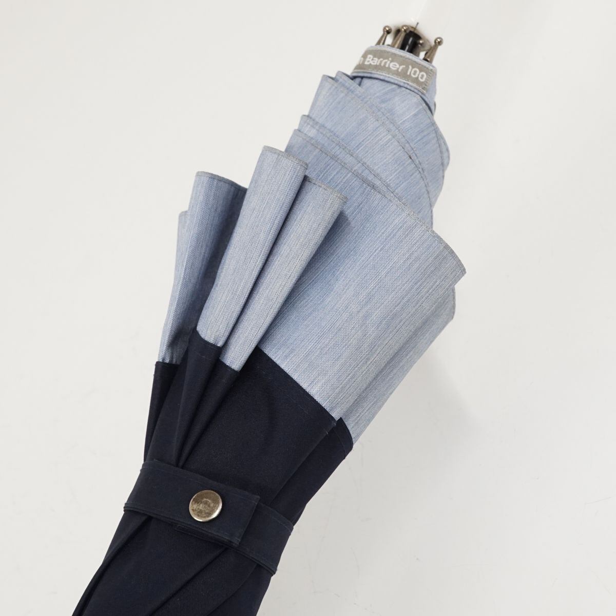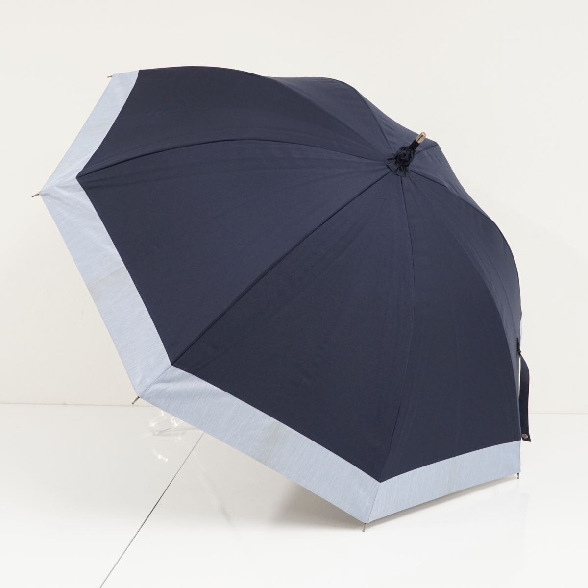 サンバリア100 完全遮光日傘 USED美品 Mサイズ コンビ ネイビー×フロストブルー UV 遮熱 カーボンフレーム 55cm KR S0331