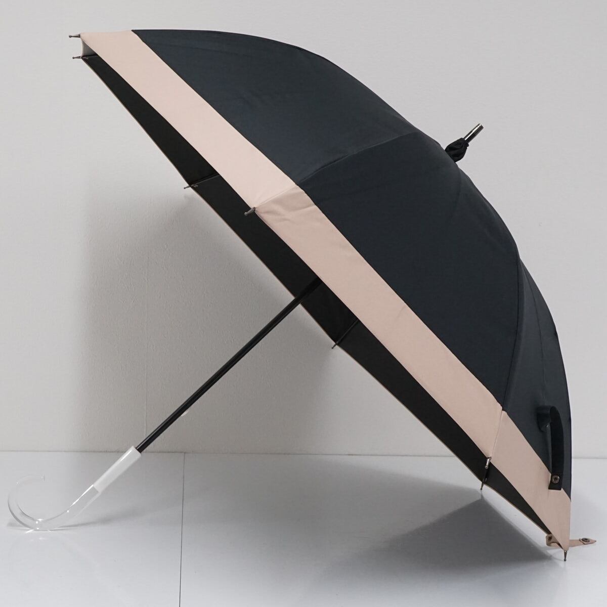 サンバリア100 完全遮光日傘 USED美品 Mサイズ ブラック ピンク コンビ クリア手元 UVカット 遮熱 紫外線対策 55cm S2320