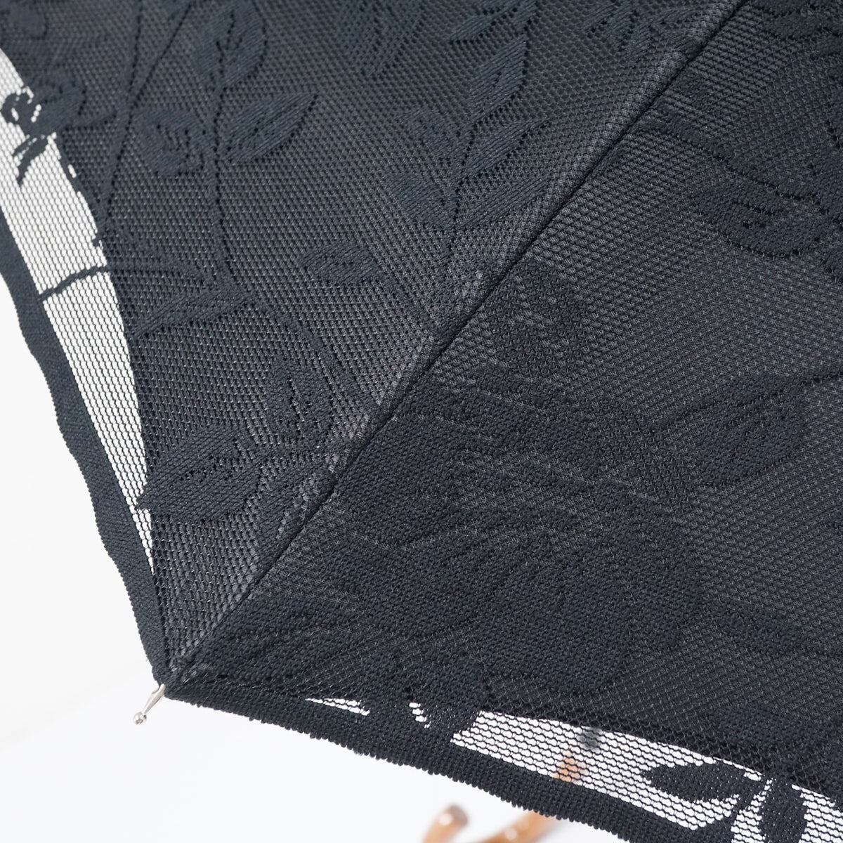 日傘 ブロンズ USED美品 フラワー レース 黒 ブラック×ブラック 晴雨兼用 UV 遮光 遮熱 45cm A2870