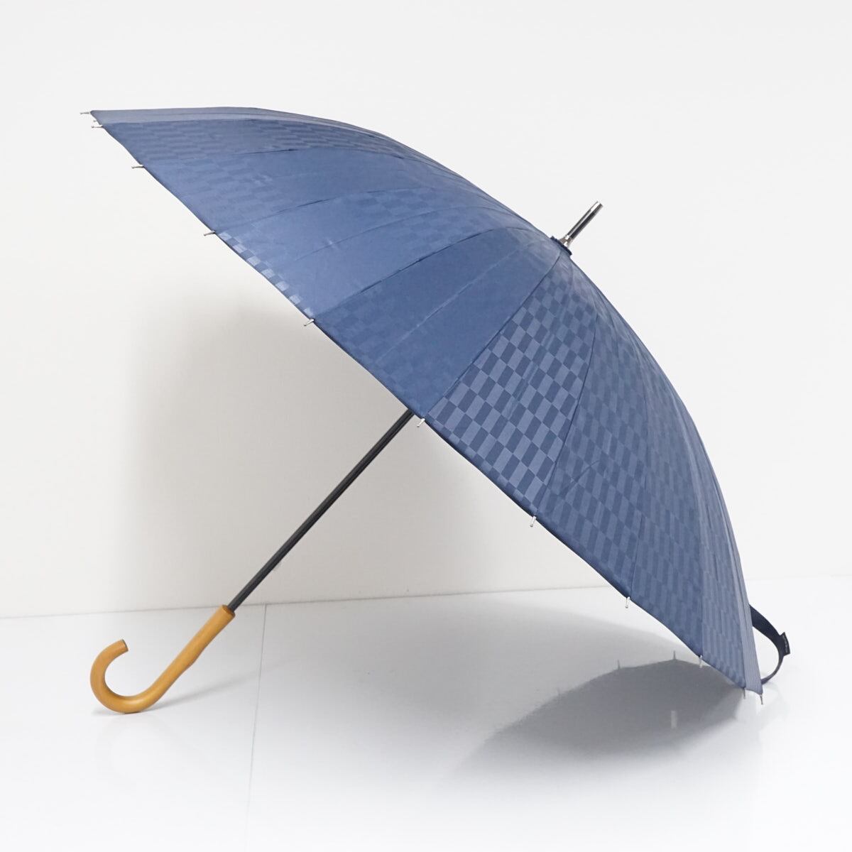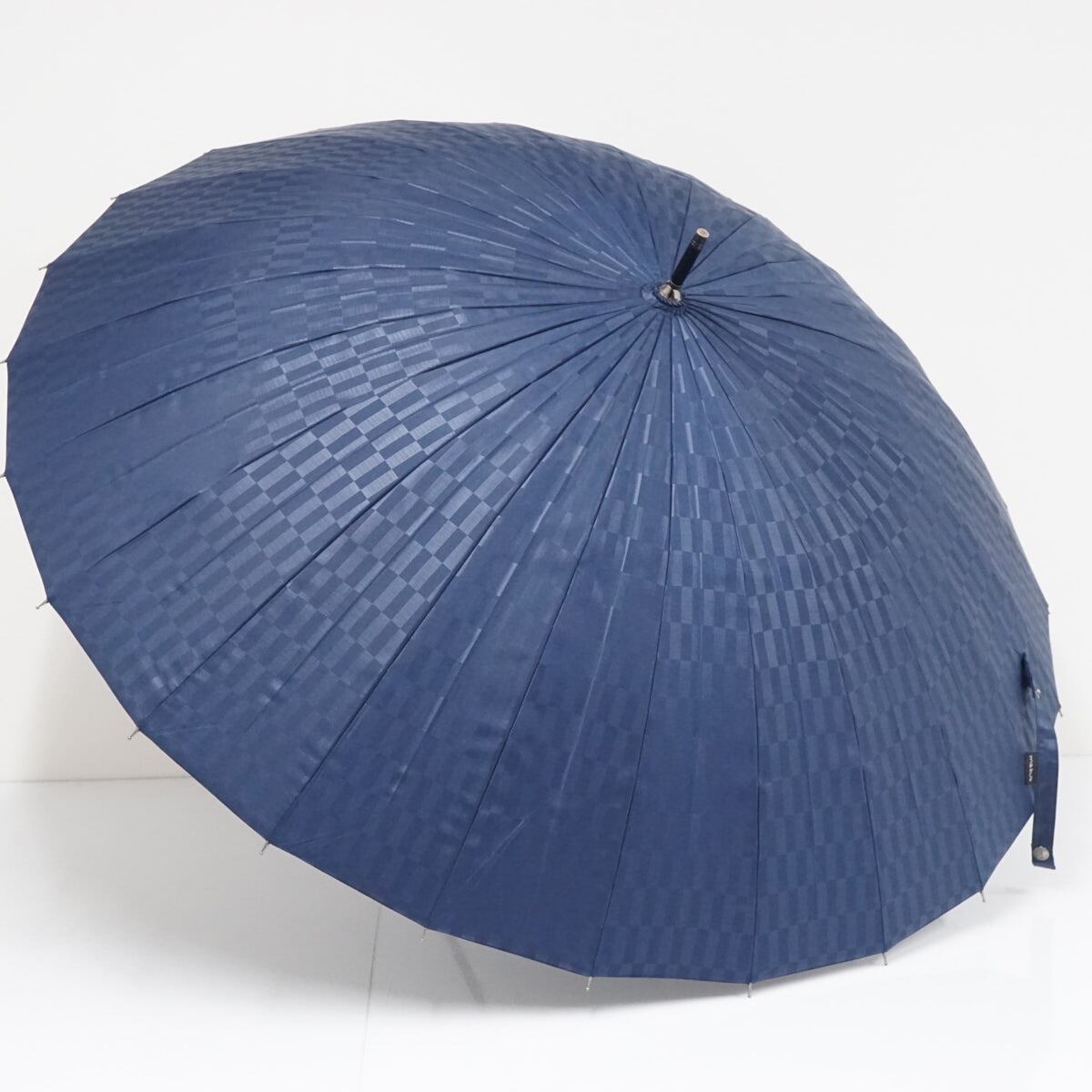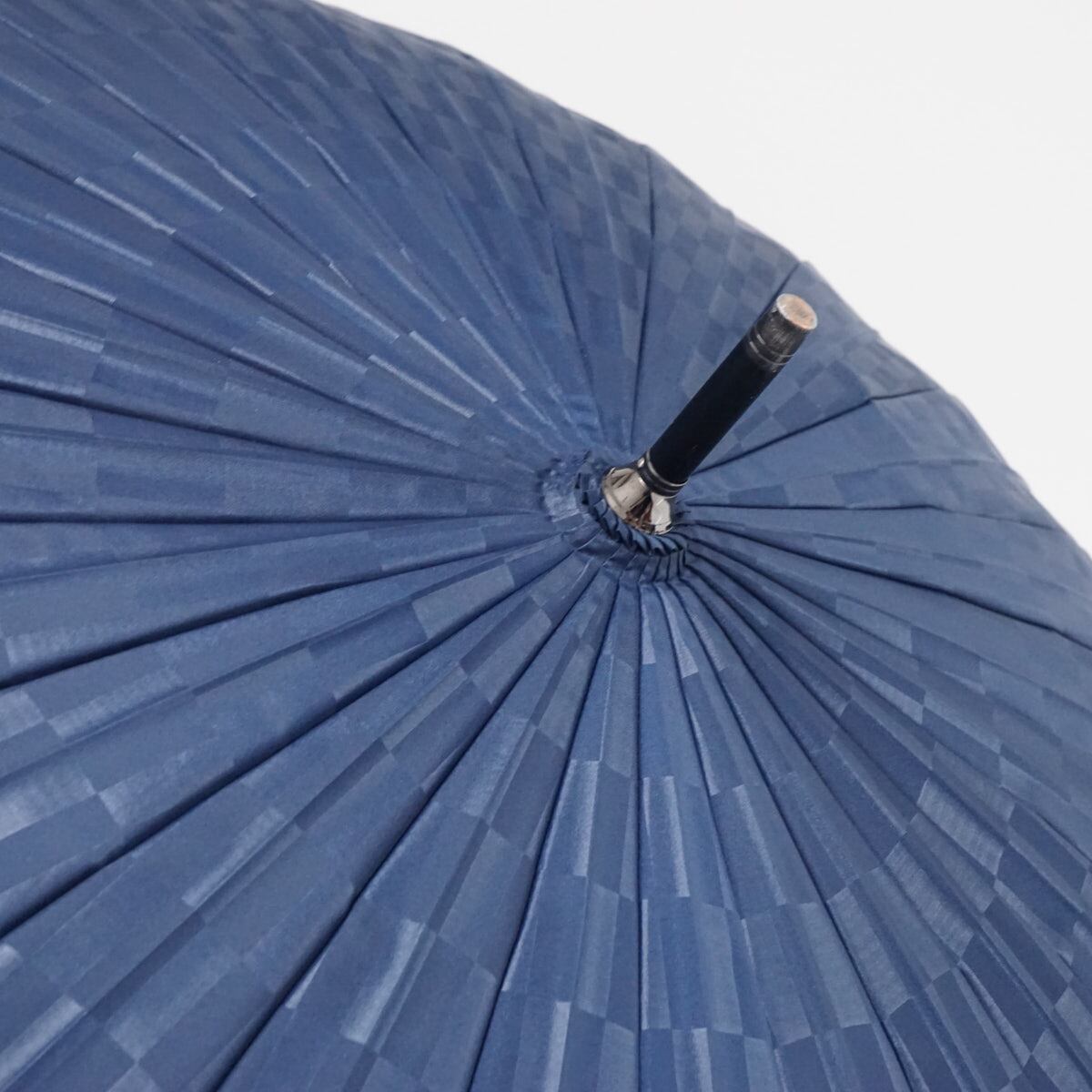 mabu マブ 傘 江戸 24本骨傘 USED美品 藍×長市松紋 江戸切子 和風モダン レトロ 男女兼用 UVカット グラス骨 60cm