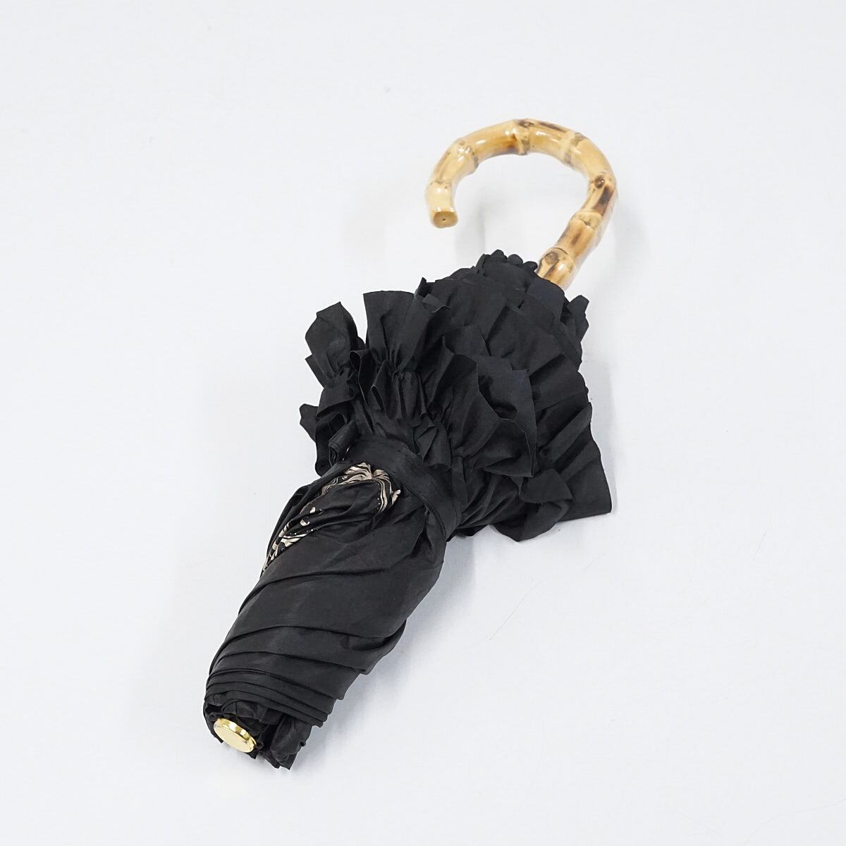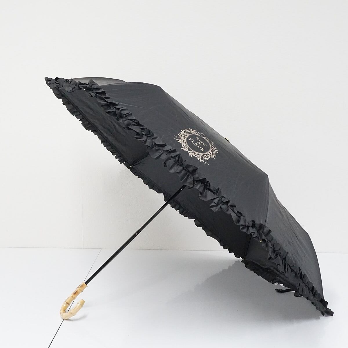 折りたたみ日傘 Maison de FLEUR メゾンドフルール USED品 折日傘 晴雨兼用 ブラック フリル エンブレム UV 遮光 55cm FA8776