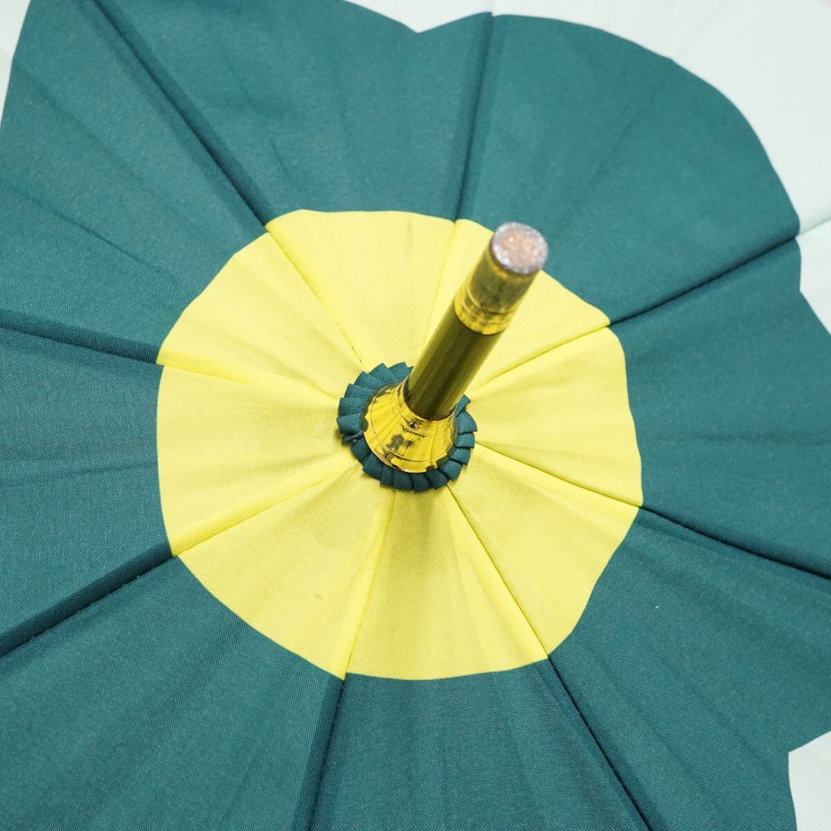 傘 HOKUSAI GRAPHIC 北斎グラフィック USED美品 和柄テキスタイル 琺瑯鍋 ほうろうなべ 丸屋根深張傘 緑 グラス骨 58cm A1500