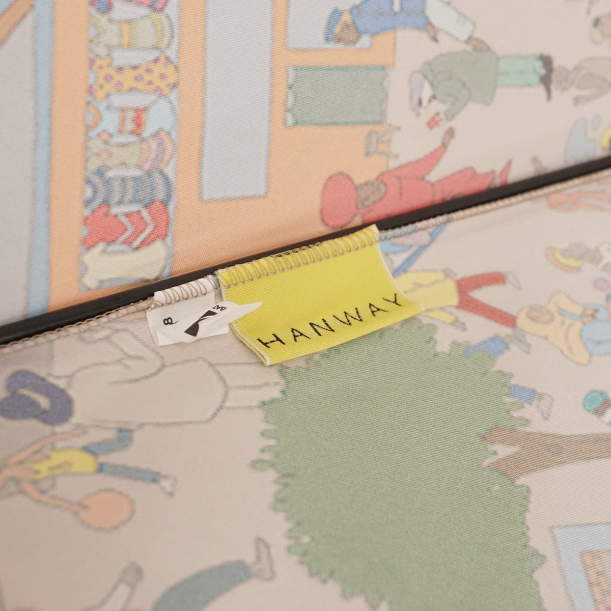 タンザニアのマーケットがモチーフの柄をパネル・プリントの「一枚張り」で表現しています。