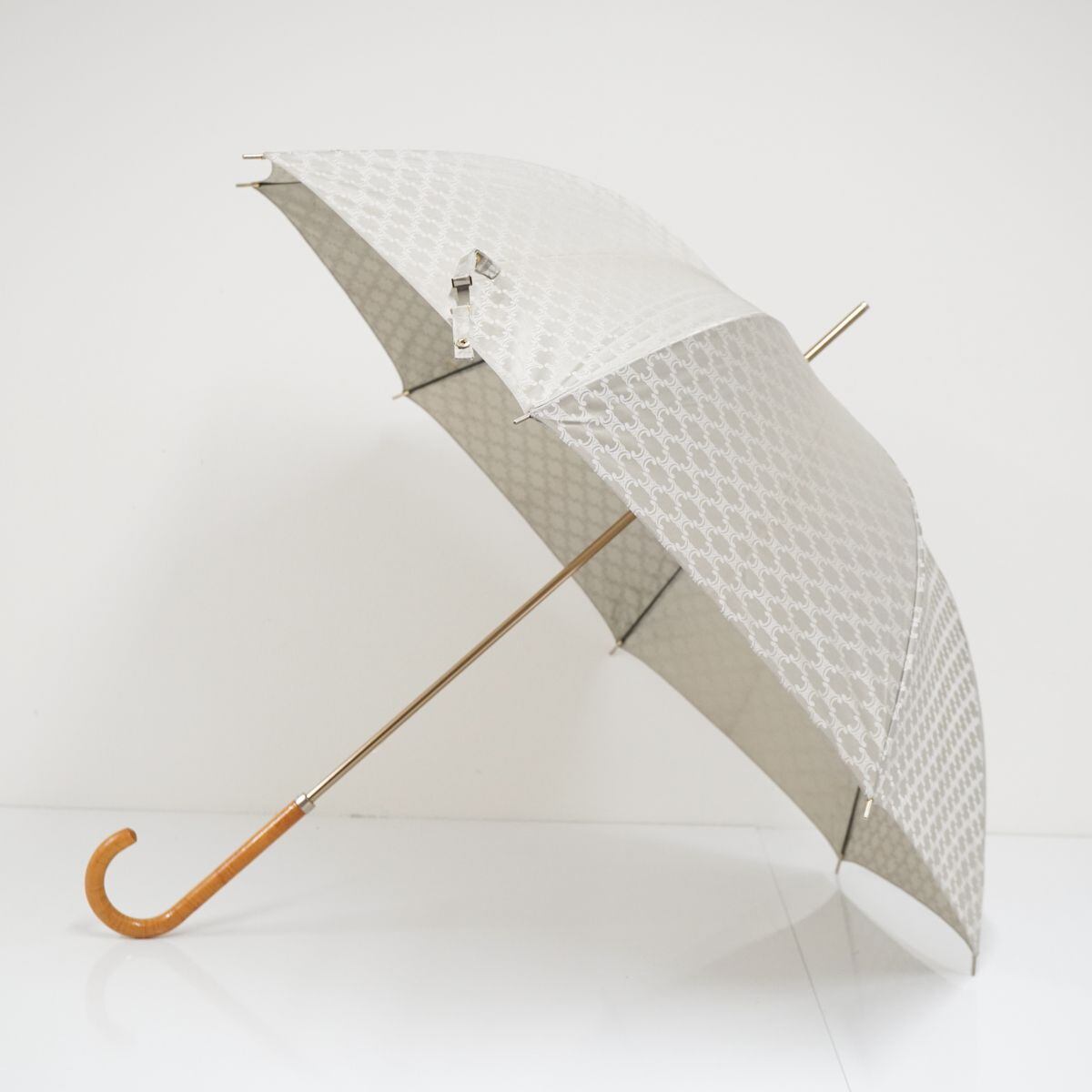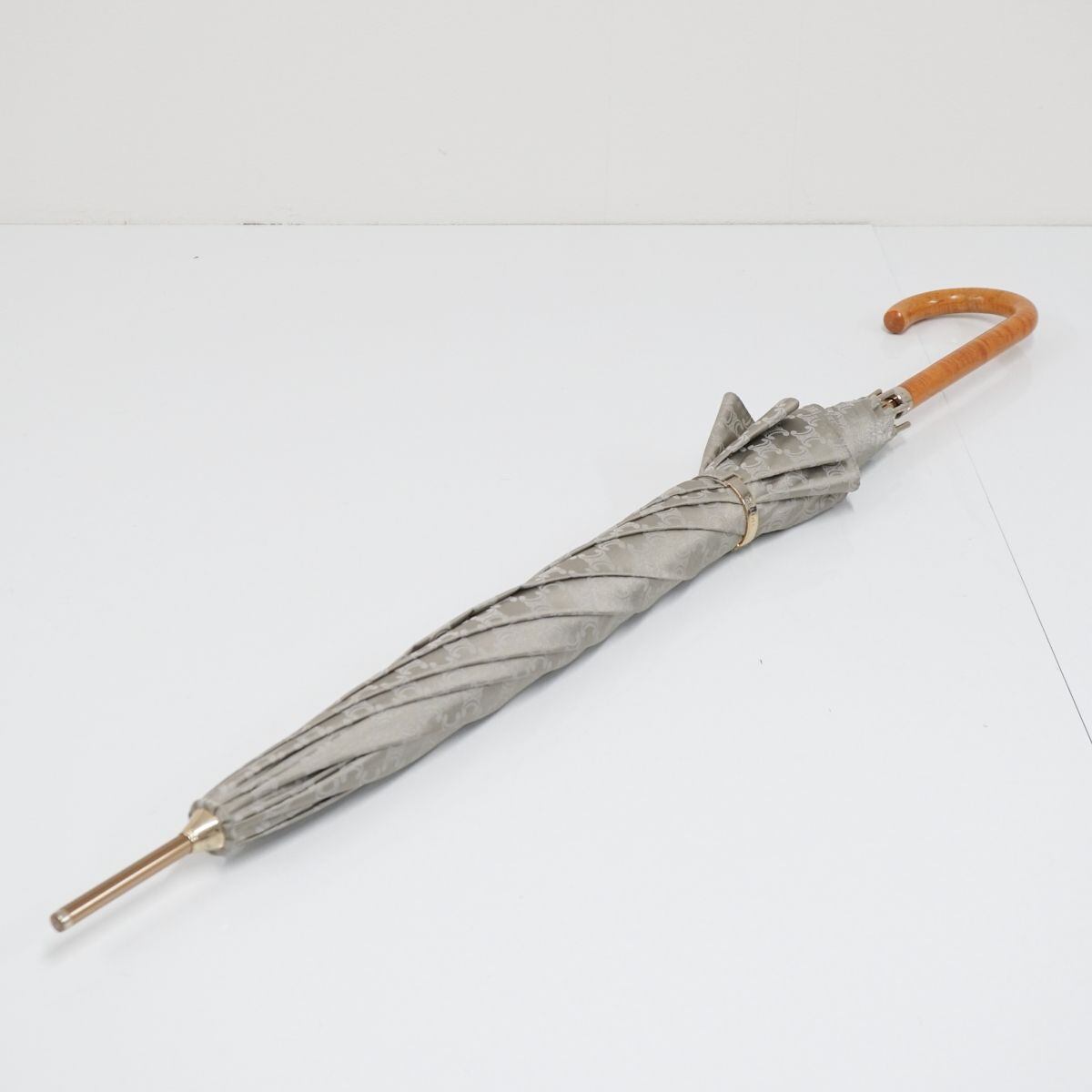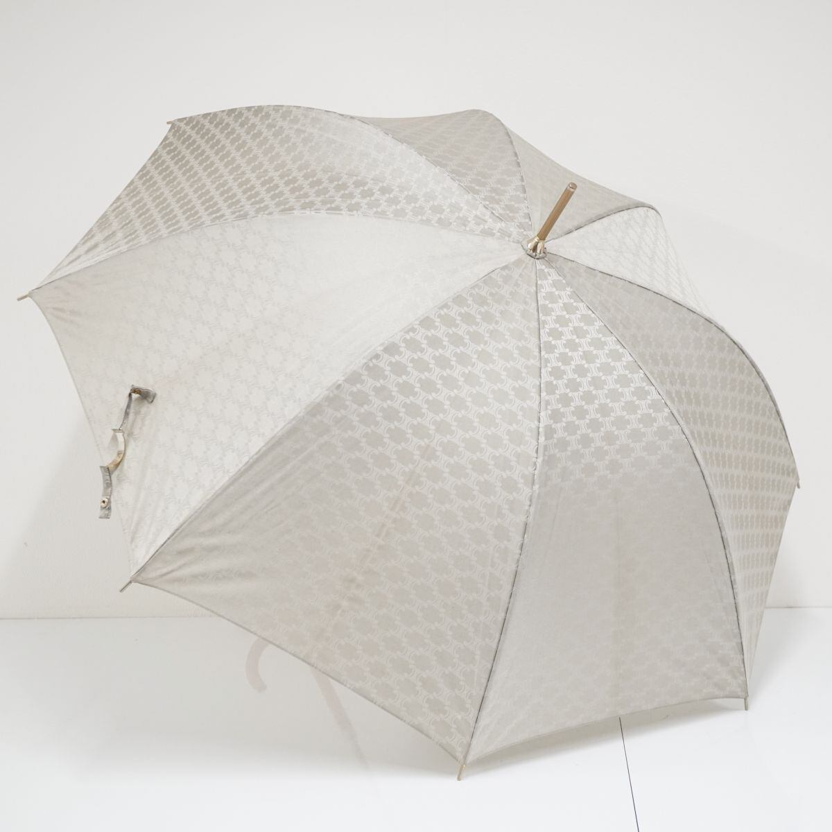CELINE セリーヌ 高級傘 USED品 マカダム プレート シルバー ジャガード 絶版 木製手元 60cm T S0361