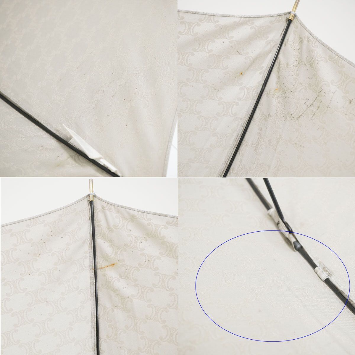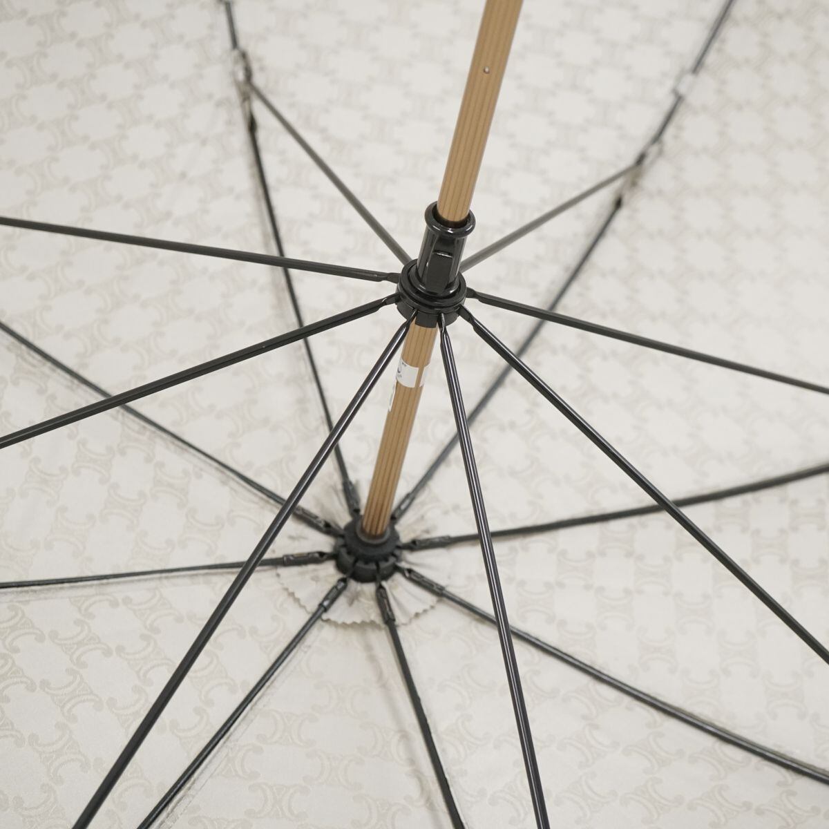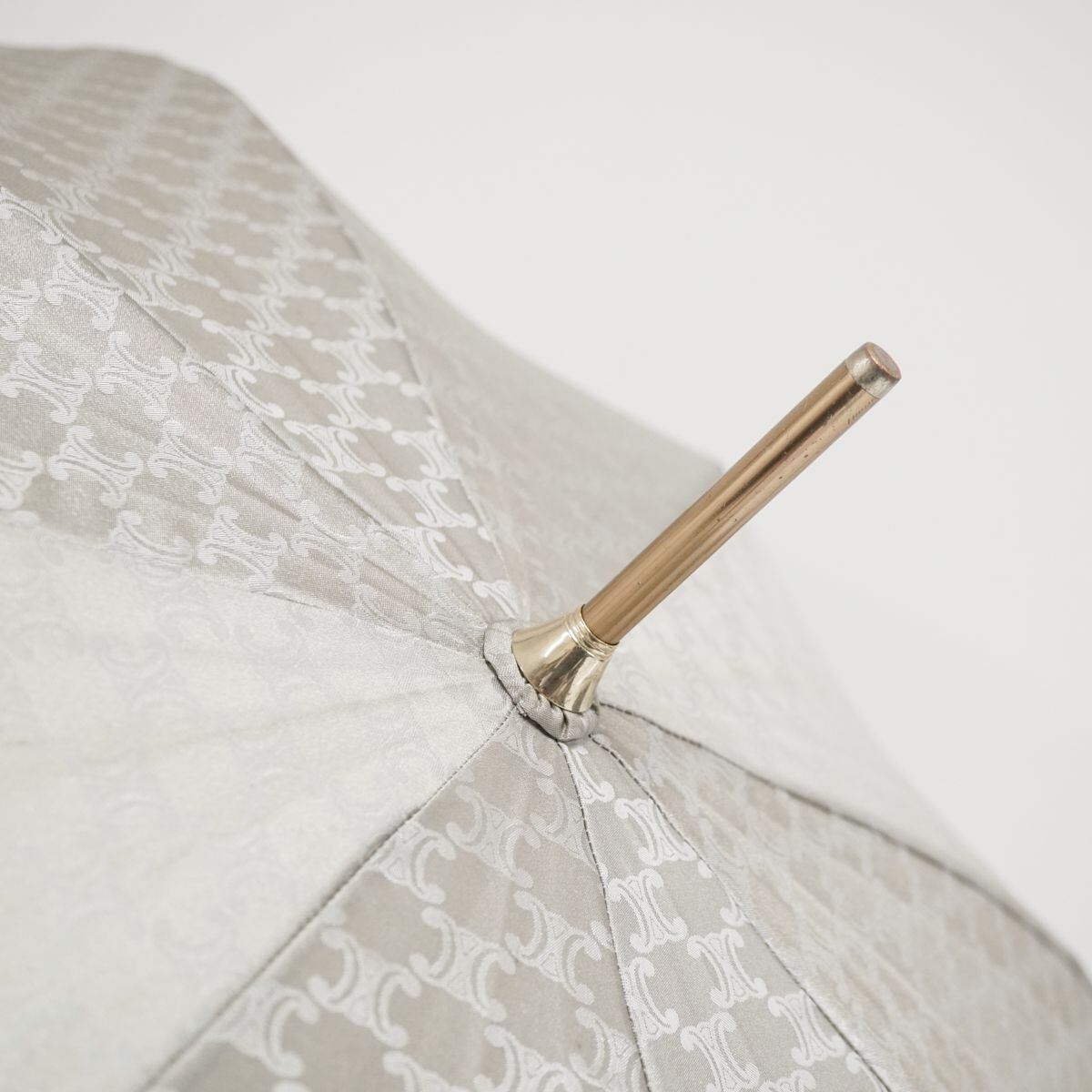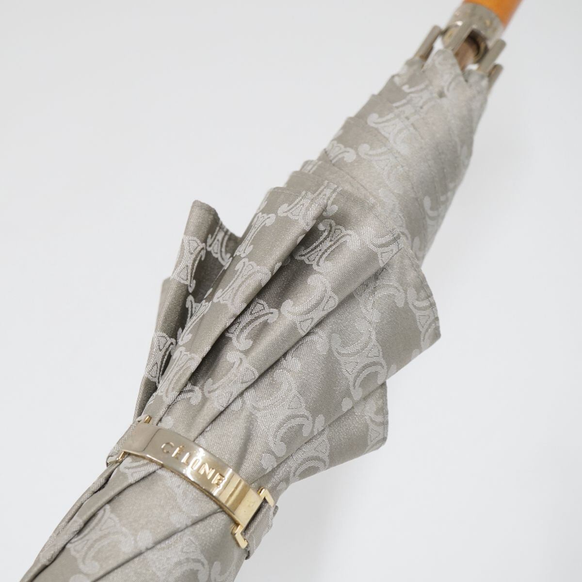 CELINE セリーヌ 高級傘 USED品 マカダム プレート シルバー ジャガード 絶版 木製手元 60cm T S0361