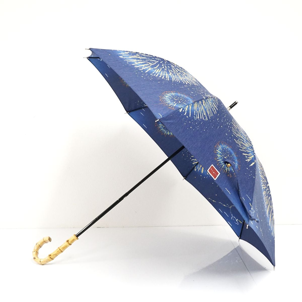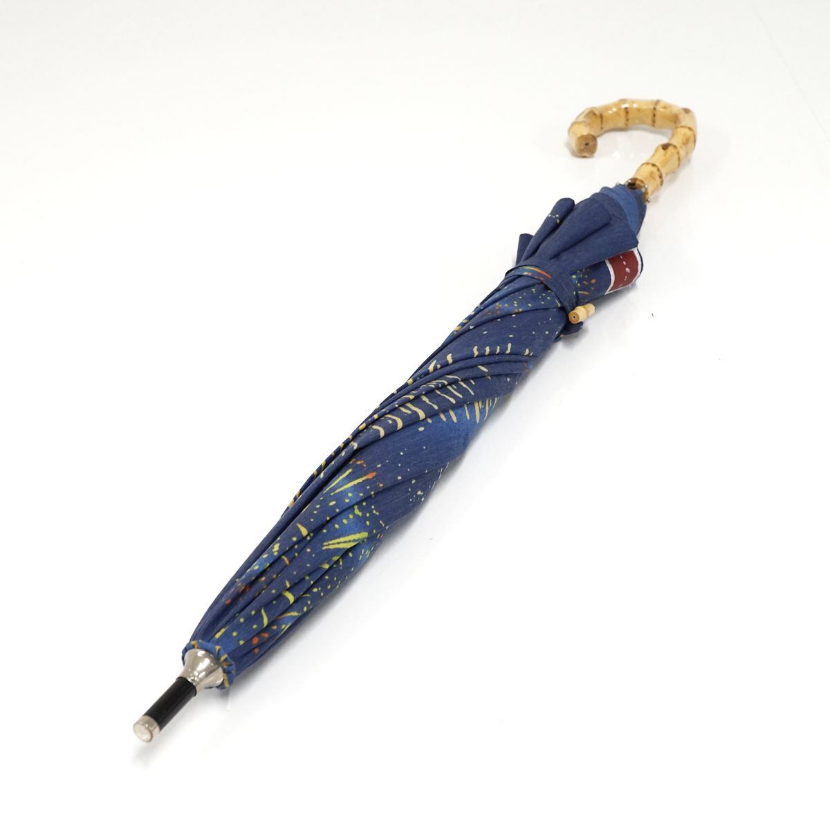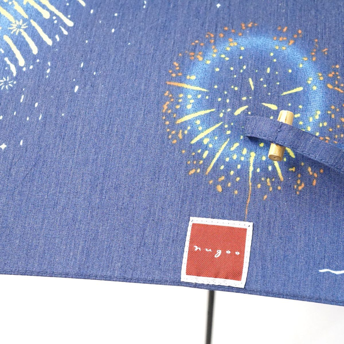 日傘 nugoo 拭う USED美品 晴雨兼用 江の島花火 和柄 ネイビーブルー UV バンブー手元 軽量 グラス骨 50cm S A0371