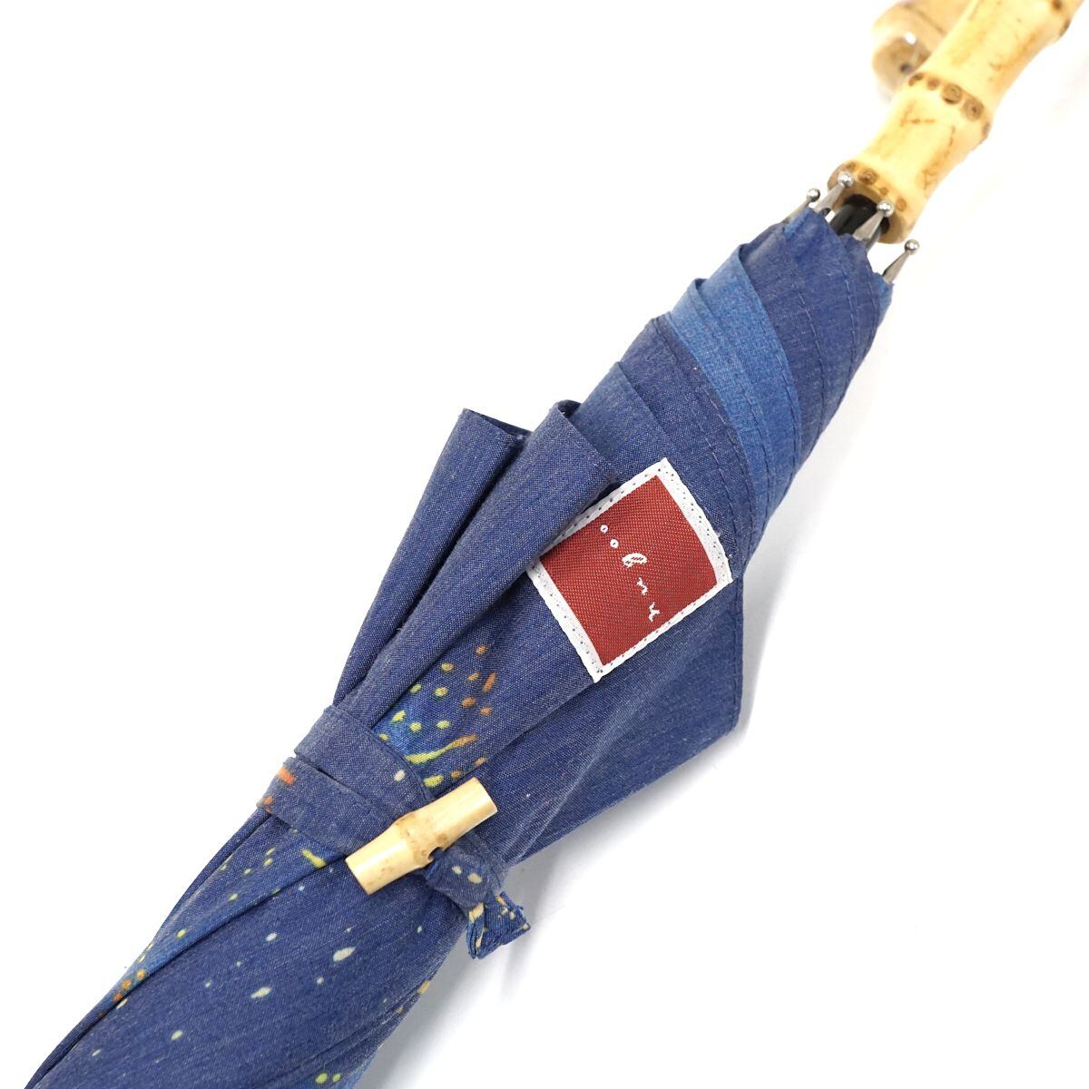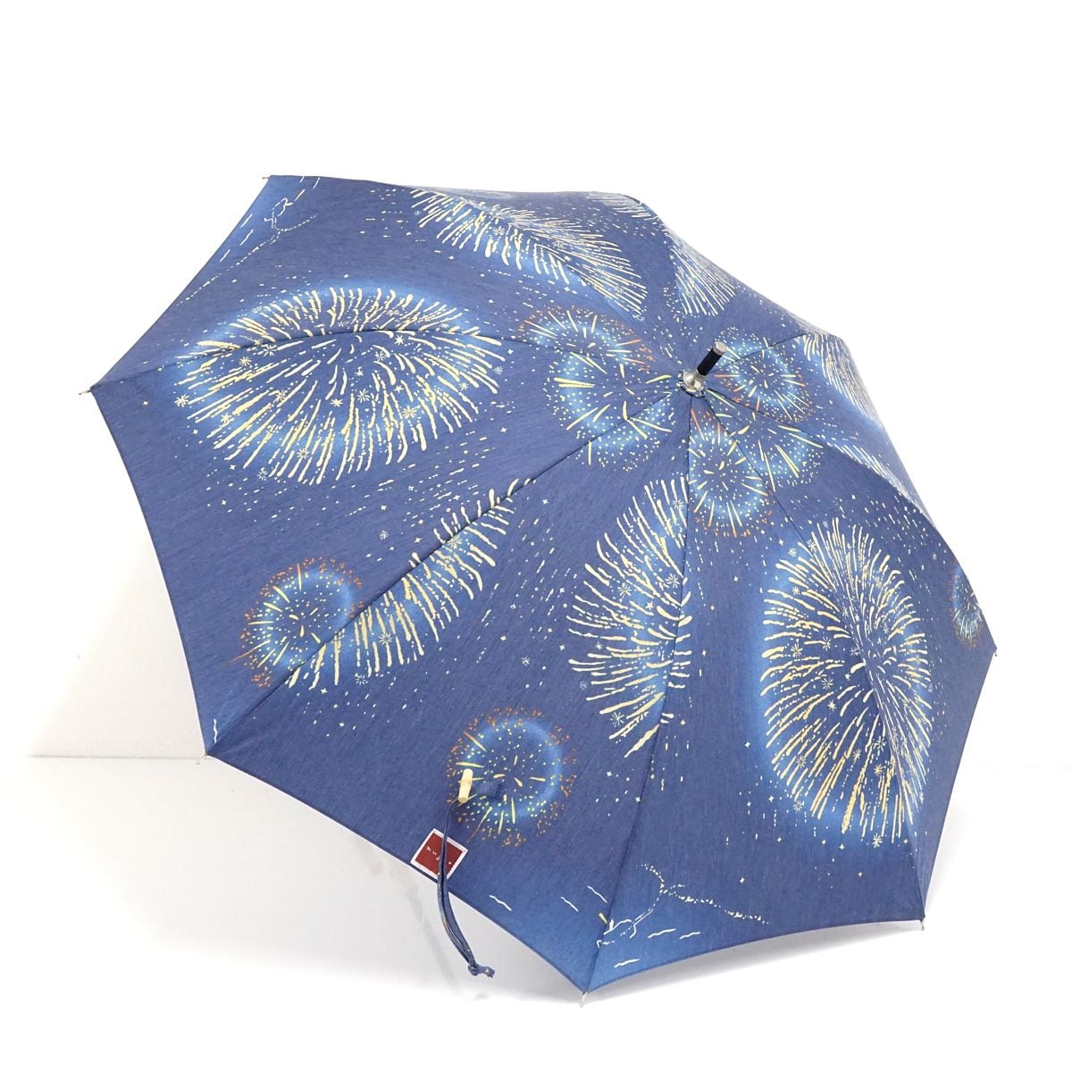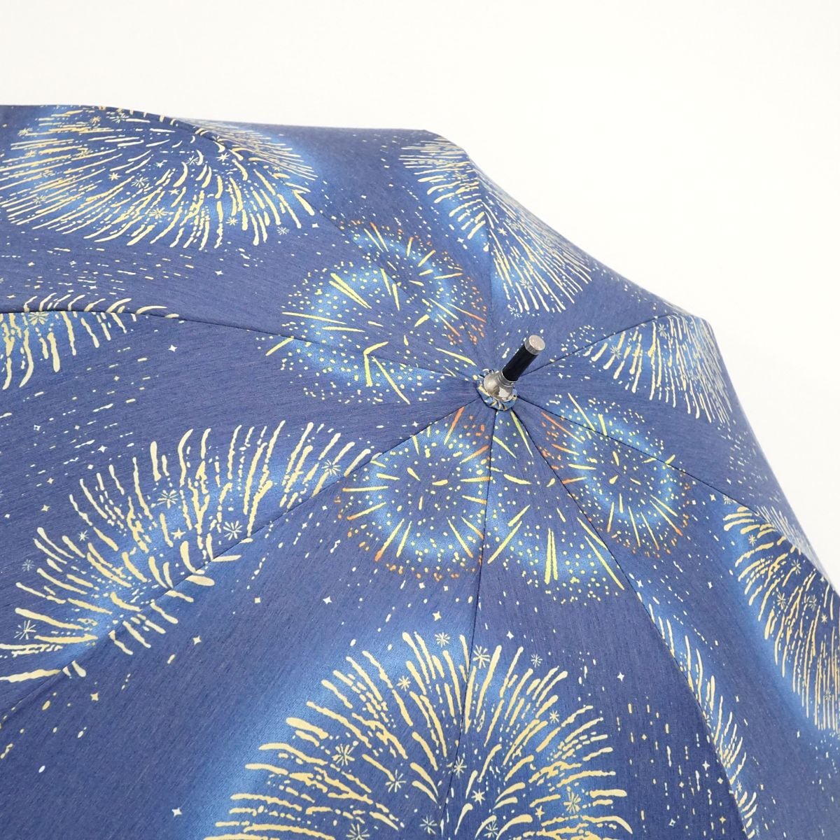 日傘 nugoo 拭う USED美品 晴雨兼用 江の島花火 和柄 ネイビーブルー UV バンブー手元 軽量 グラス骨 50cm S A0371