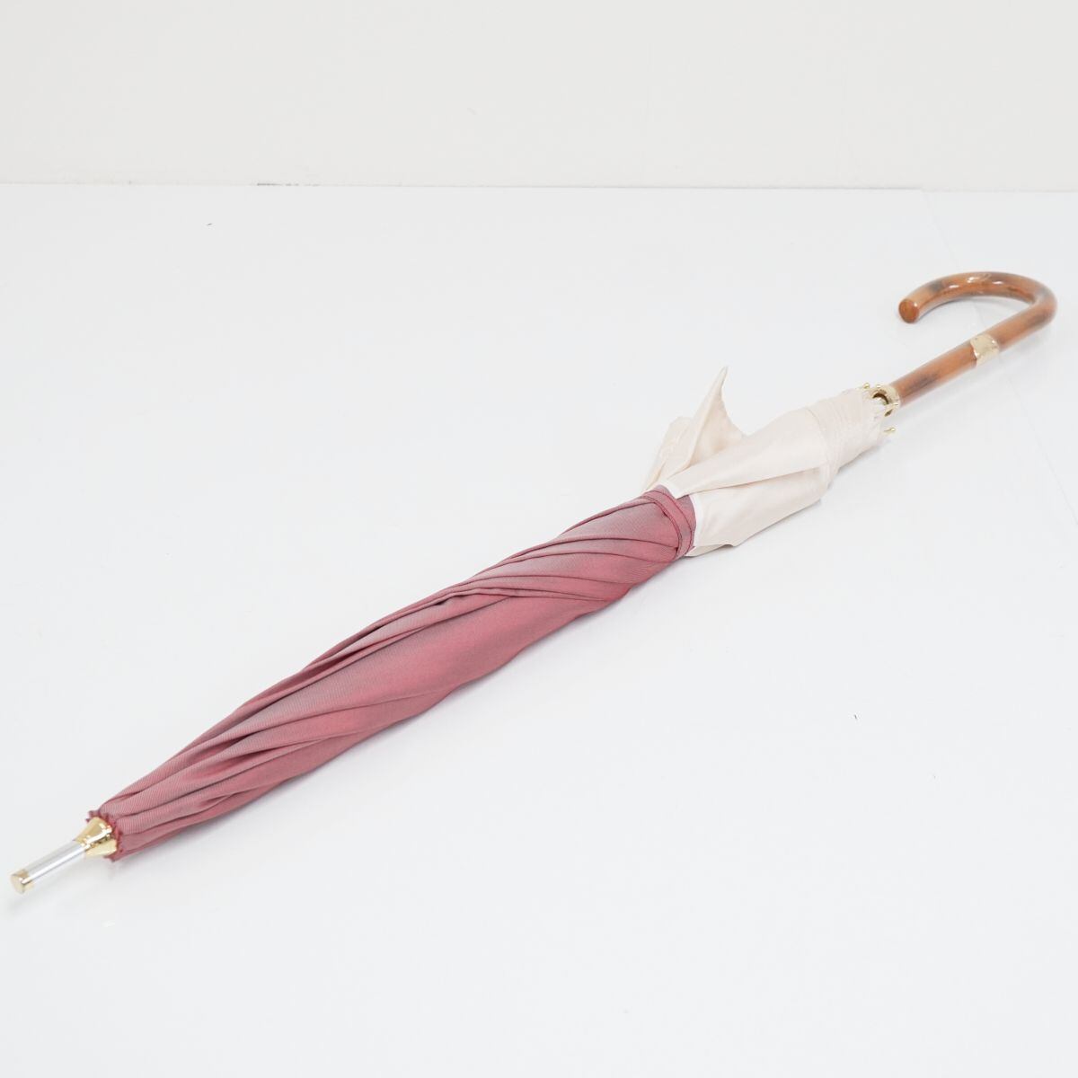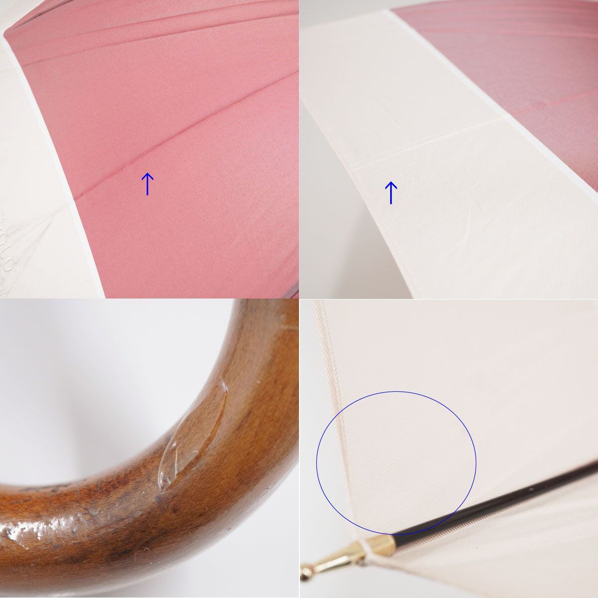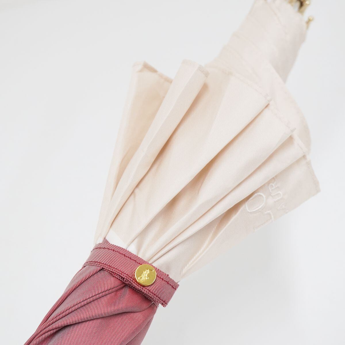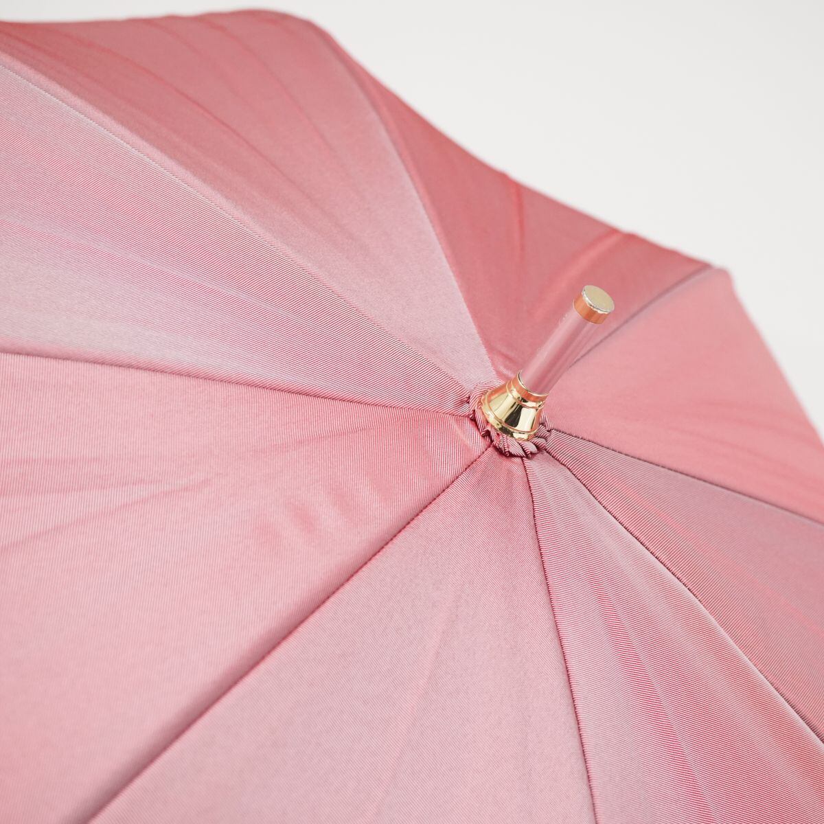シンプルなピンクの生地を基調に外周をホワイトの生地で囲んだシックなデザインの傘です。