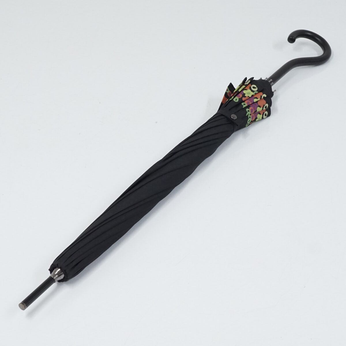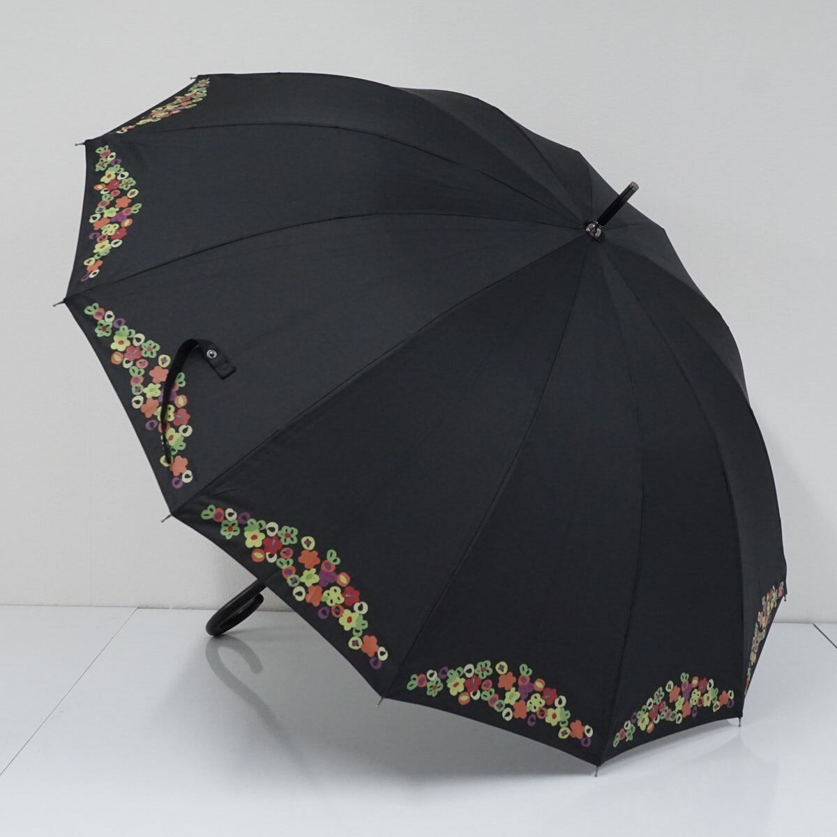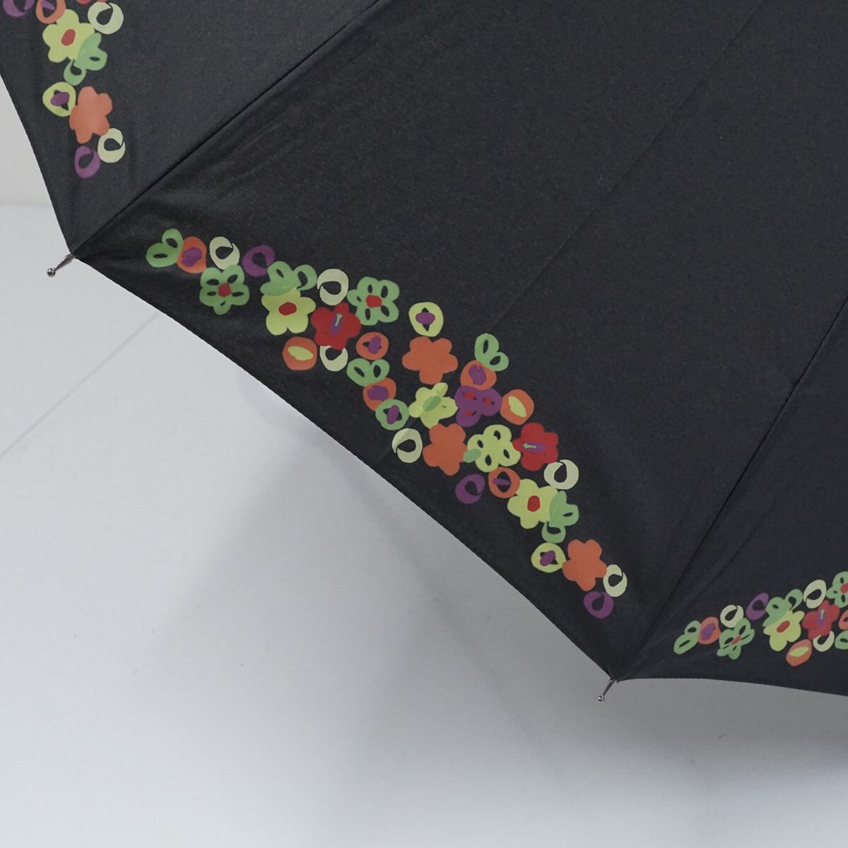 傘 Sybilla シビラ USED美品 フラワーモチーフ ブラック 黒 12本骨 小花 グラスファイバーフレーム 軽量 多間 55cm A3260