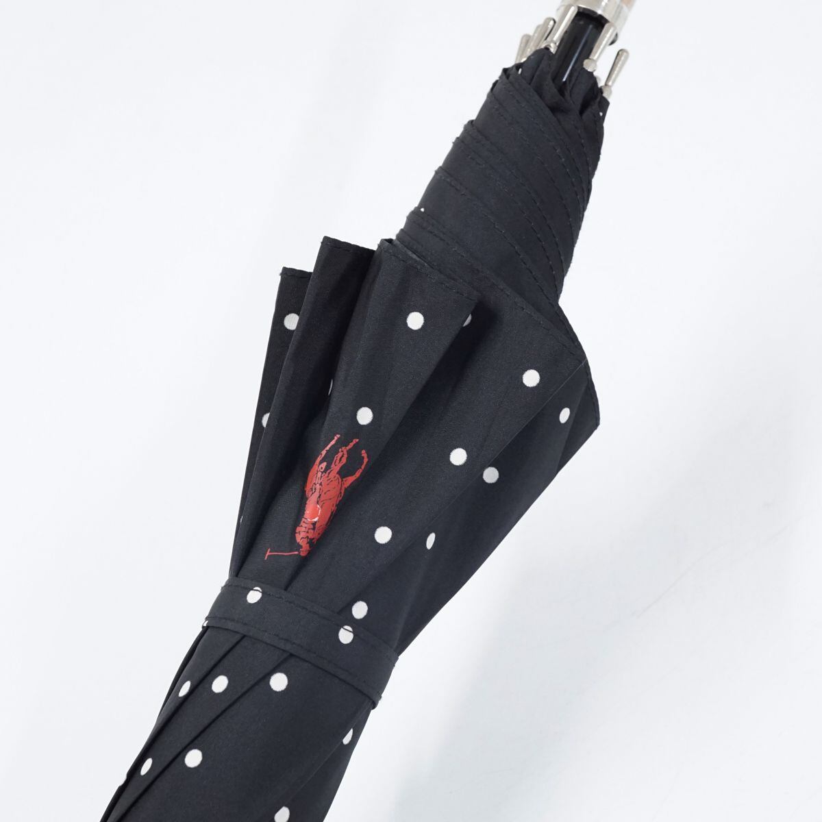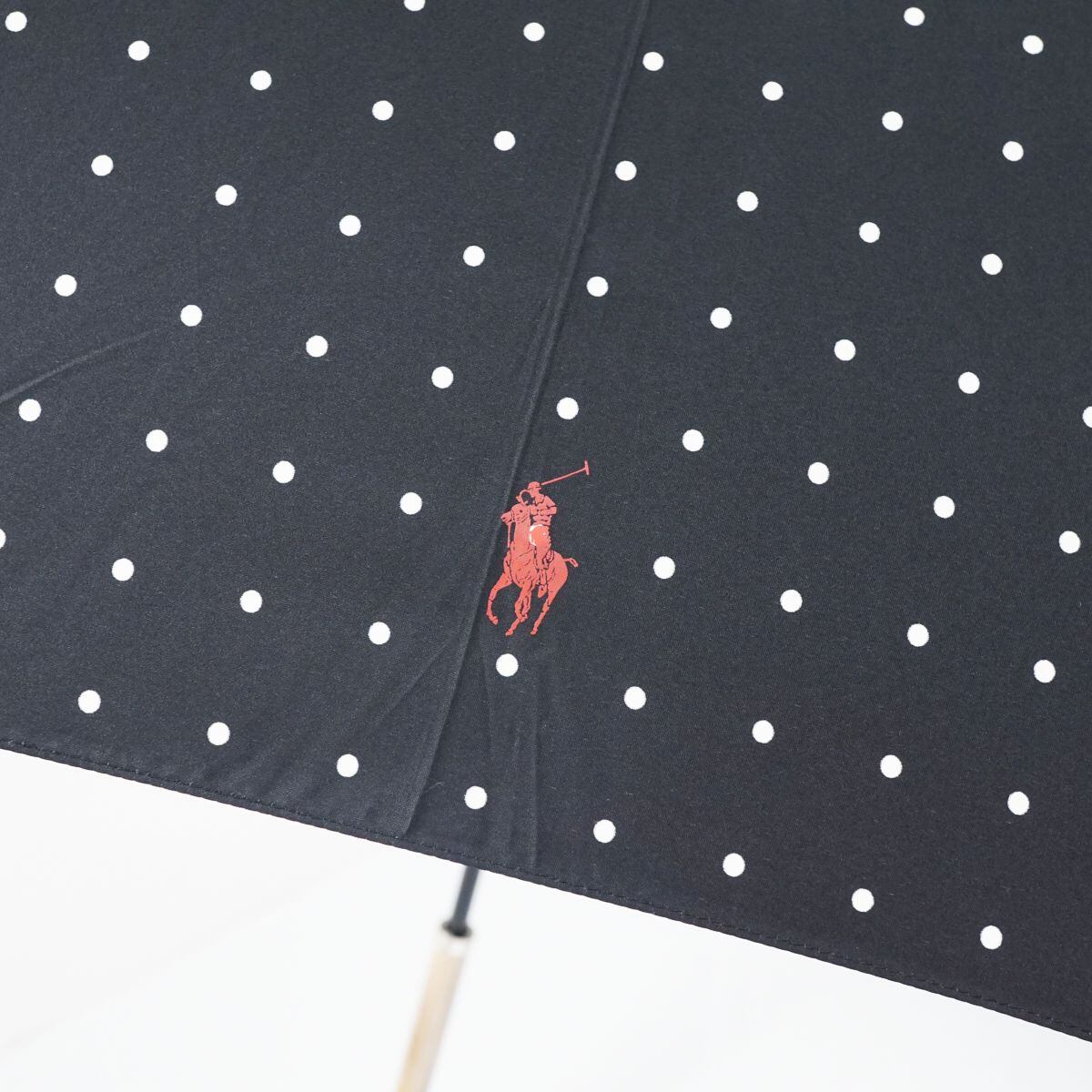 傘 Polo Ralph Lauren ポロラルフローレン USED美品 ブラック ドット ポロ 高級 ジャンプ 60cm S1667