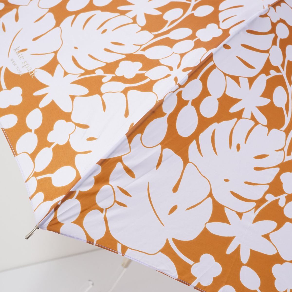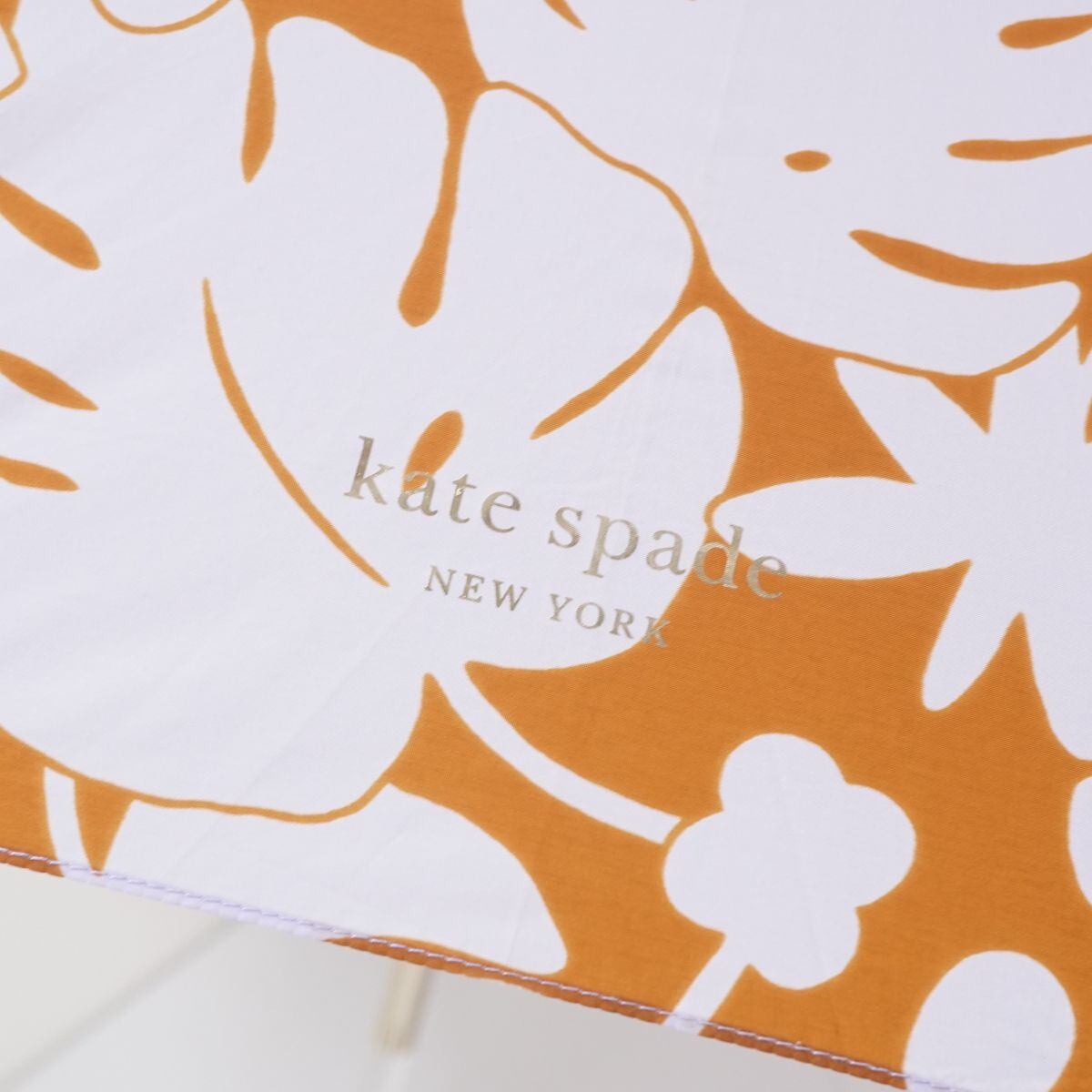 傘 Kate spade new york ケイトスペード USED美品 モンステラ リーフ柄 ボタニカル ロゴ グラスファイバーフレーム 60cm KR S0400