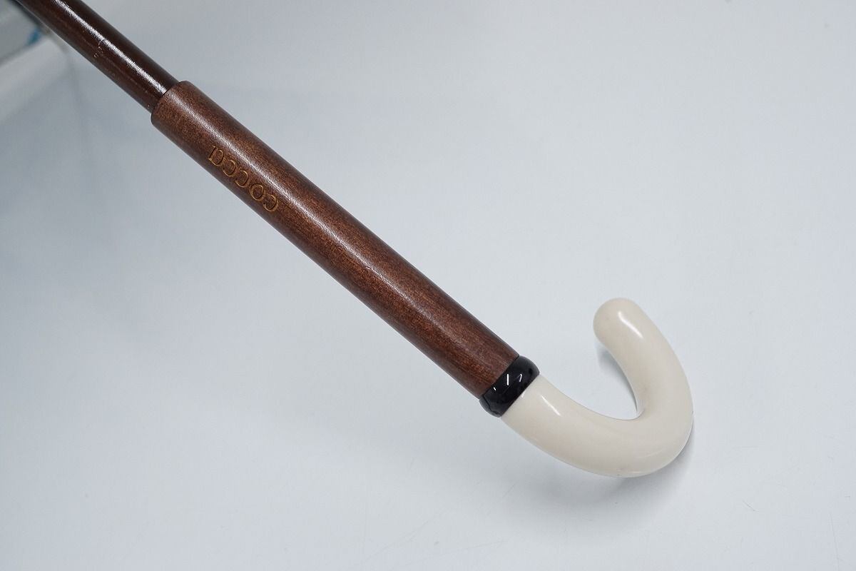 そして木製×乳白色の素材を合わせた手元にはロゴが刻印され高級感ある仕上がりです。