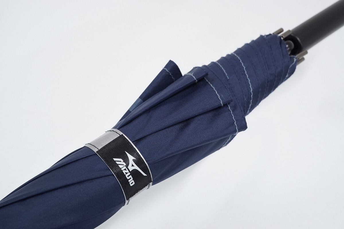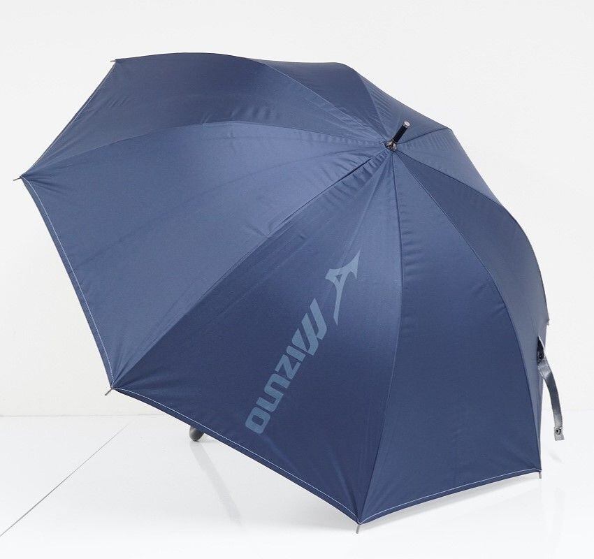 晴雨兼用傘 MIZUNO ミズノ USED美品 ネイビー ロゴ UV 遮光 グラス骨 ジャンプ 62cm 通勤 通学 C A0416