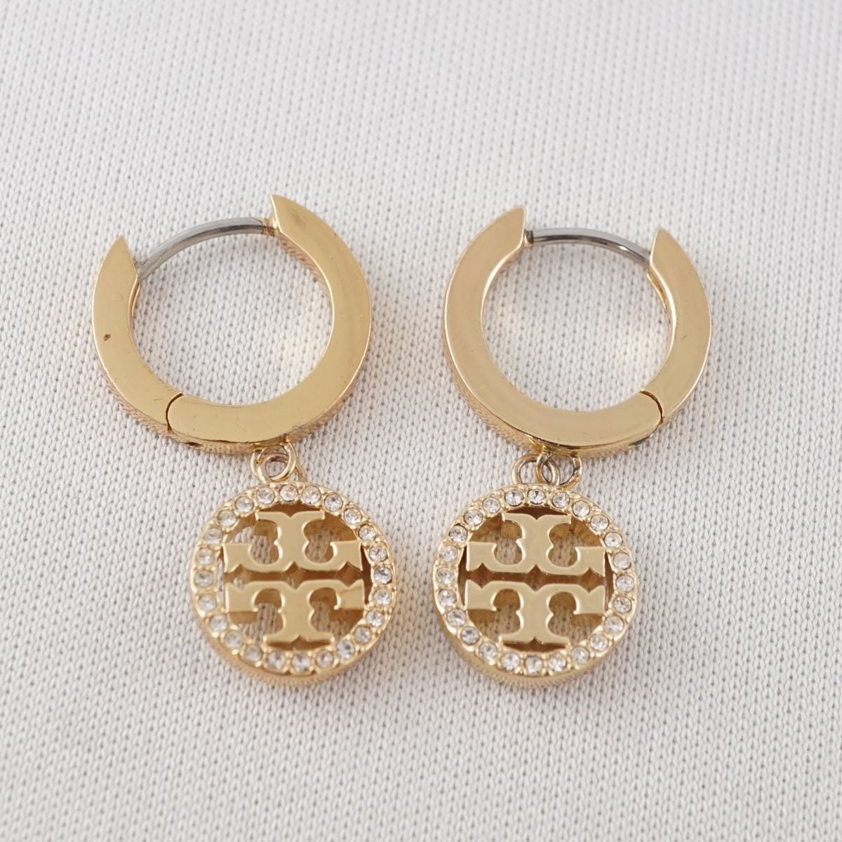 TORY BURCH トリーバーチ ピアス USED美品 ミラー パヴェ フープピアス アクセサリー KR X5247