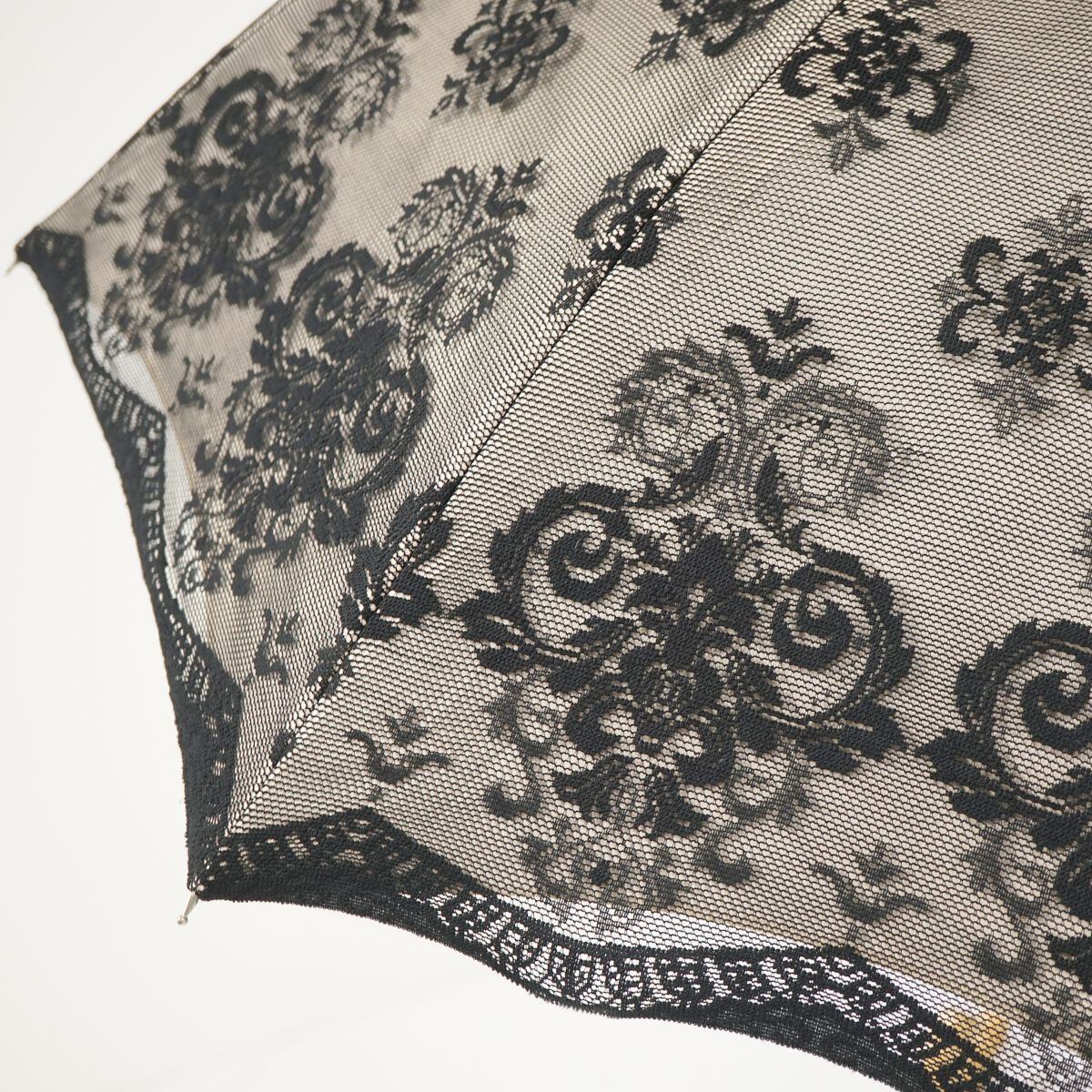 ライトベージュの遮光生地を、ダマスクデザインが素敵なブラックのレースヴェールで包んだ逸品です。