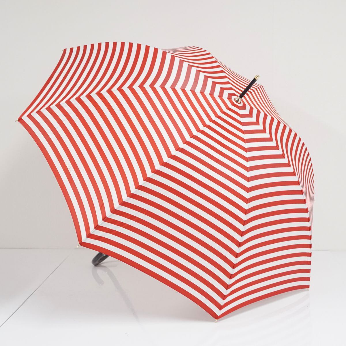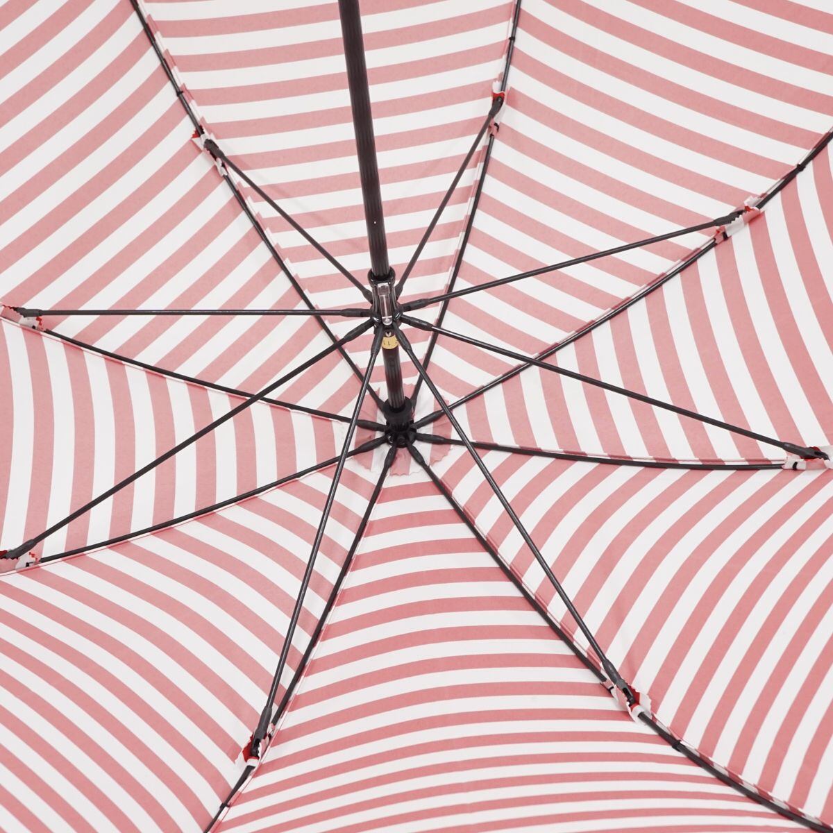 レッド×ホワイトのボーダーデザインが印象的なアニエスベーの雨傘です。