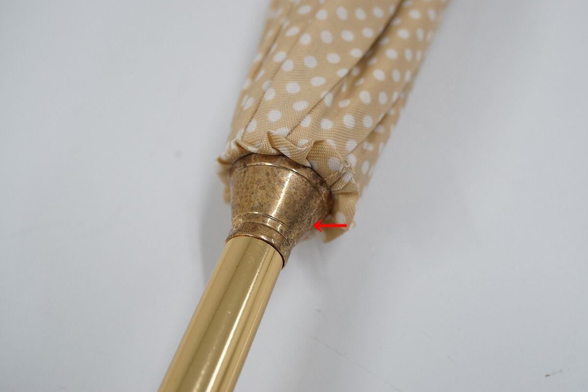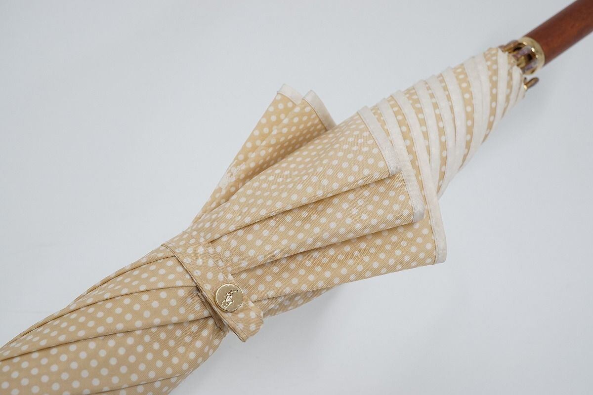 傘 Polo Ralph Lauren ラルフローレン 高級 レデイース USED美品 ドット ベージュ ポロマーク 60cm C S0447