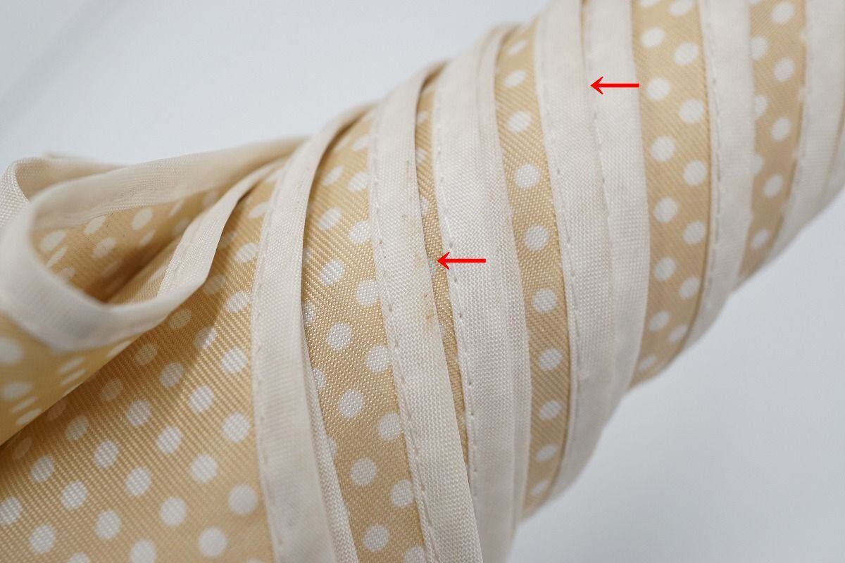 ベージュ系生地×ホワイトドットが上品なデザインです。