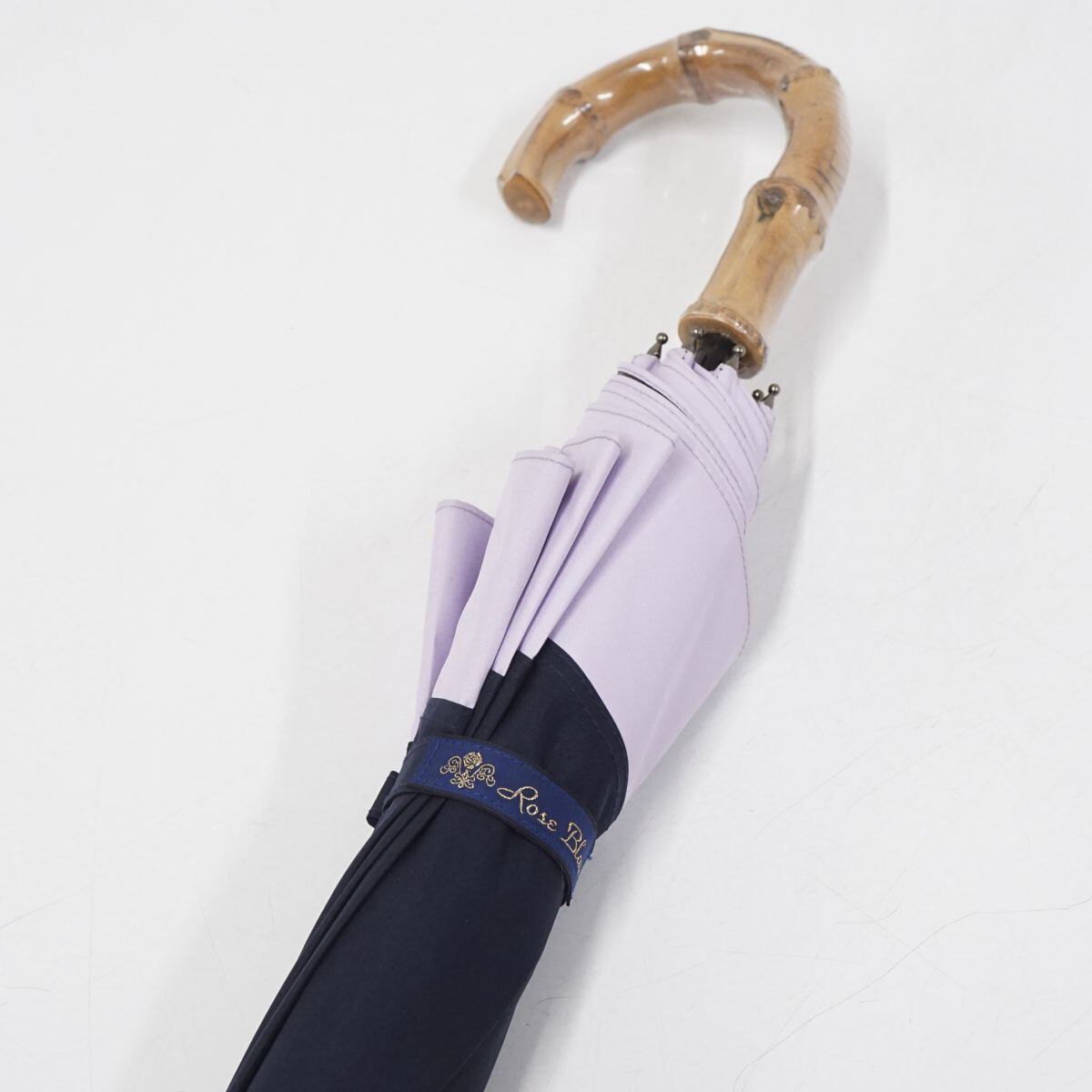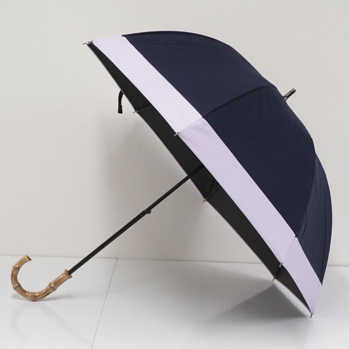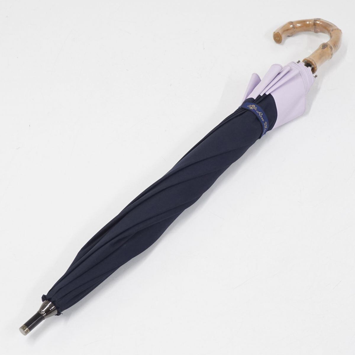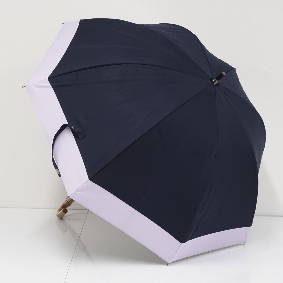 芦屋ロサブラン 完全遮光日傘 USED美品 ショートサイズ コンビ ネイビー ラベンダー UVカット 遮熱 50cm S2171