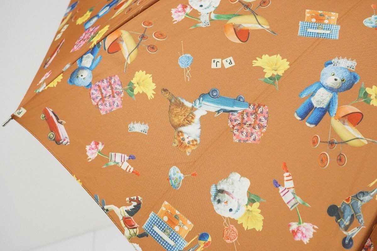 傘 PAUL & JOE ACCESSOIRES ポール&ジョー アクセソワ USED美品 フォトプリント ねこ ぬいぐるみ おもちゃ グラス骨 60cm C A0471