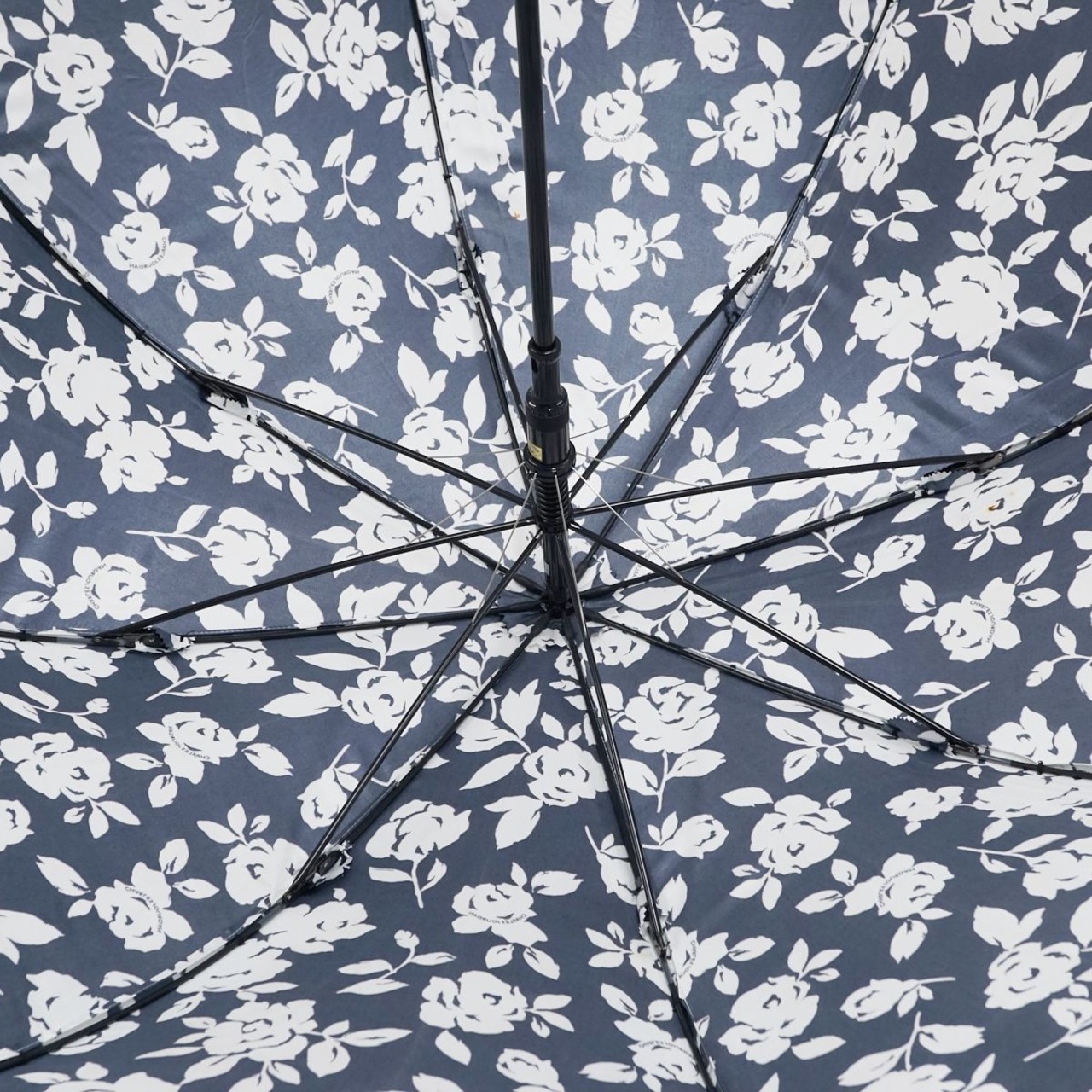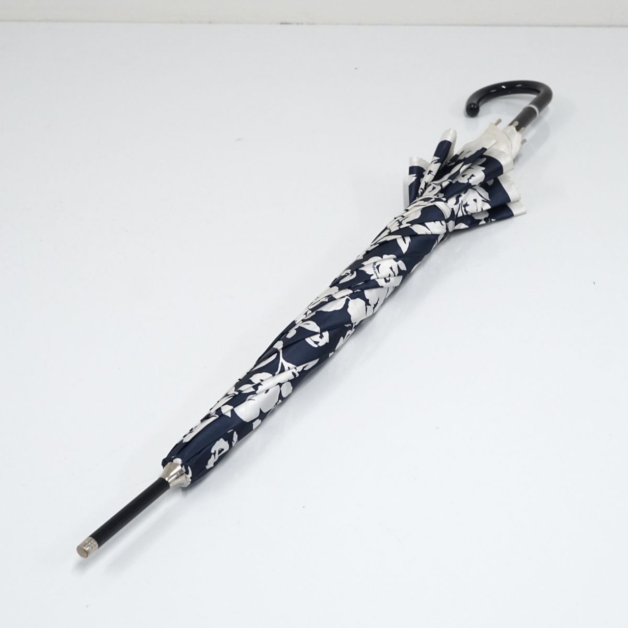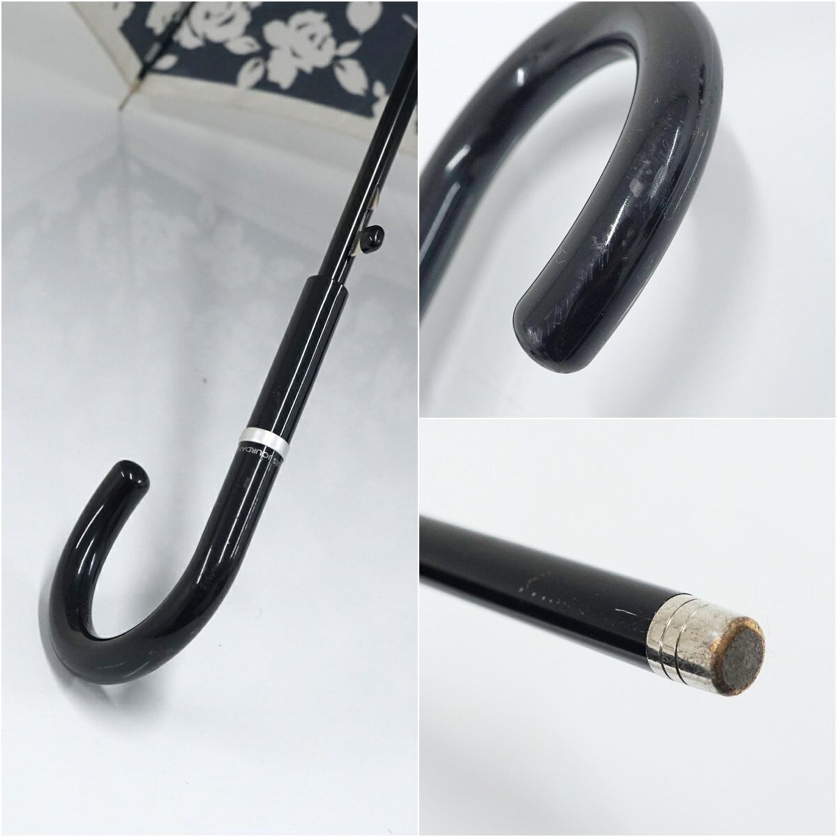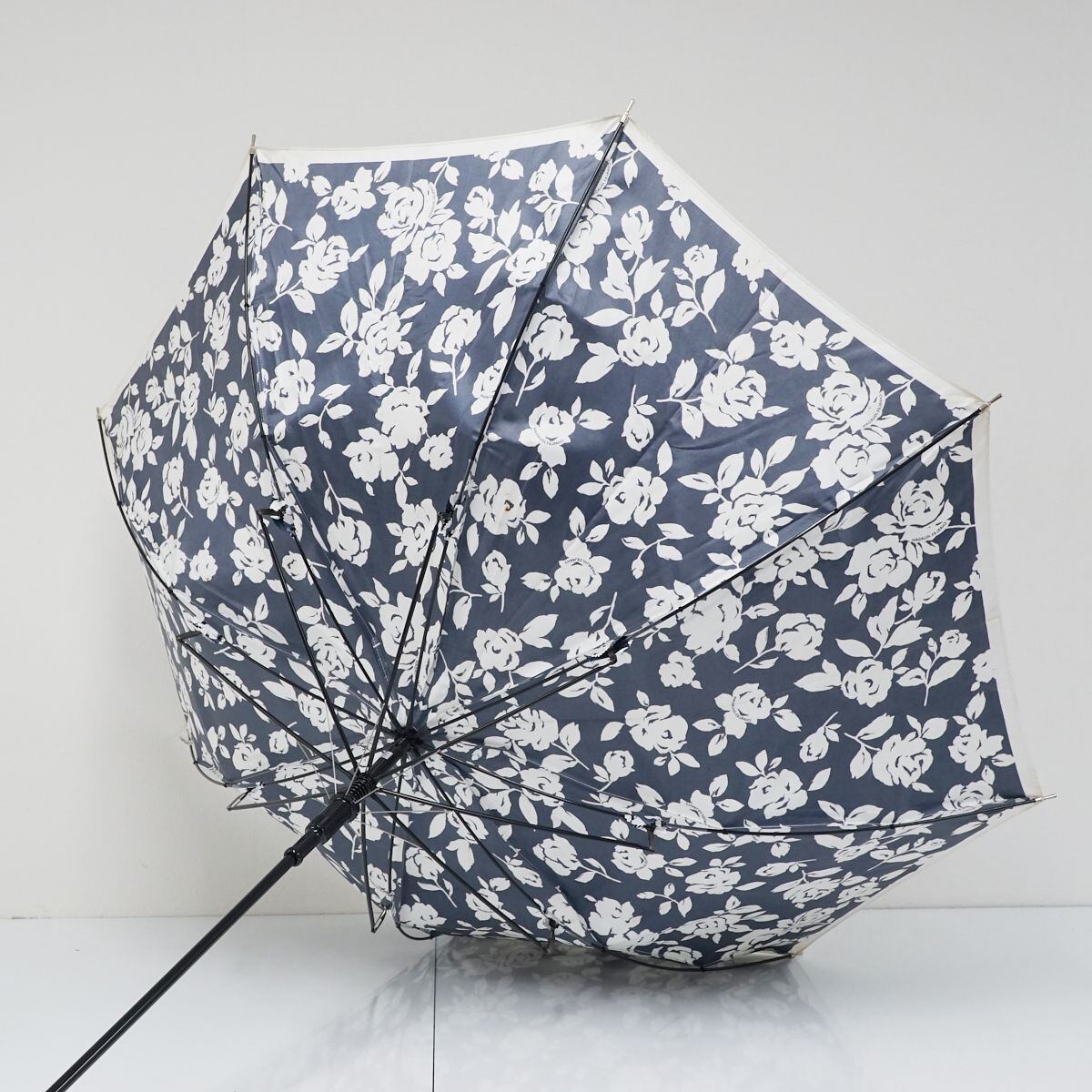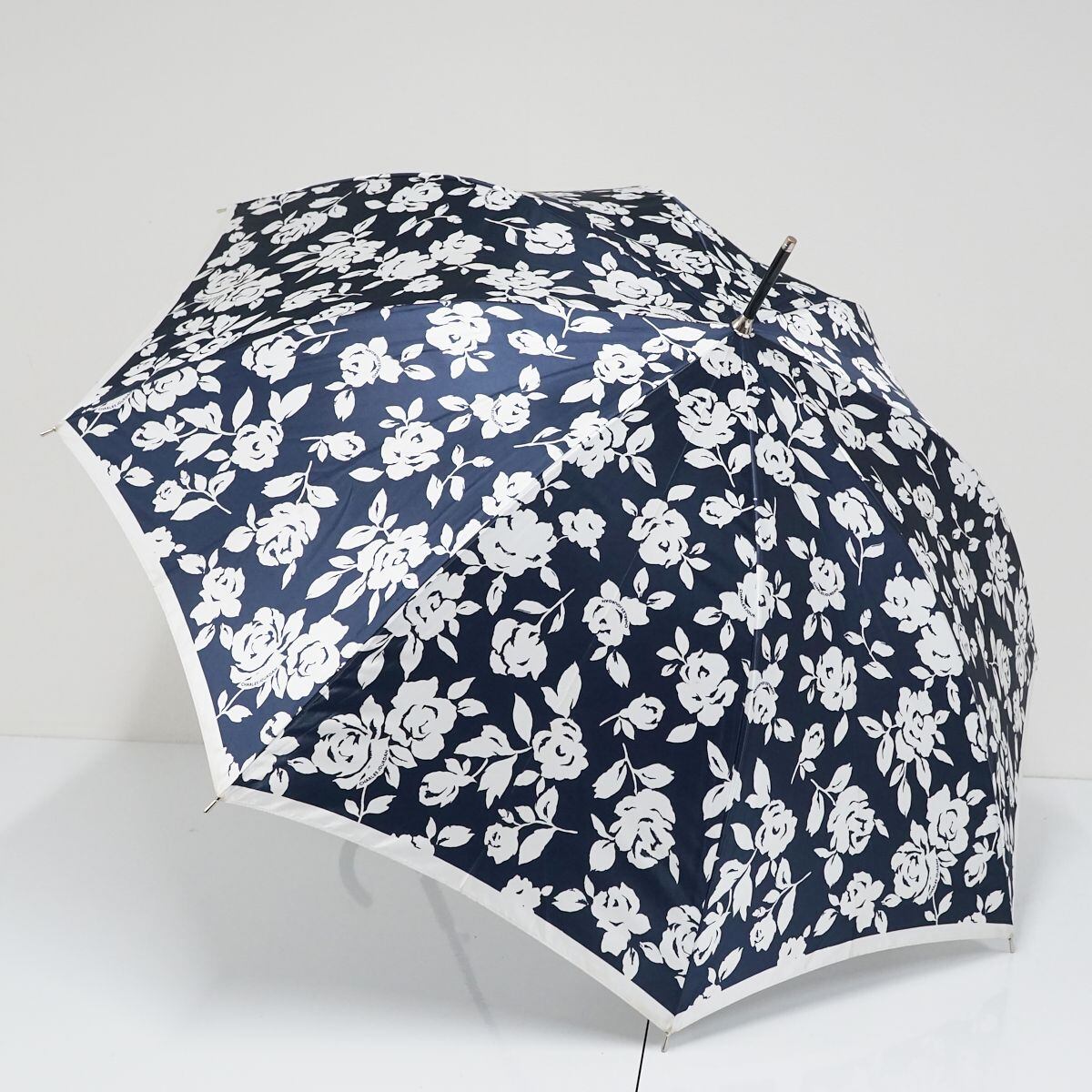 耐風傘 CHARLES JOURDAN シャルルジョルダン USED品 フラワープリント シルエット サテン ネイビー ロゴジャンプ 風に強い 60cm S A0454