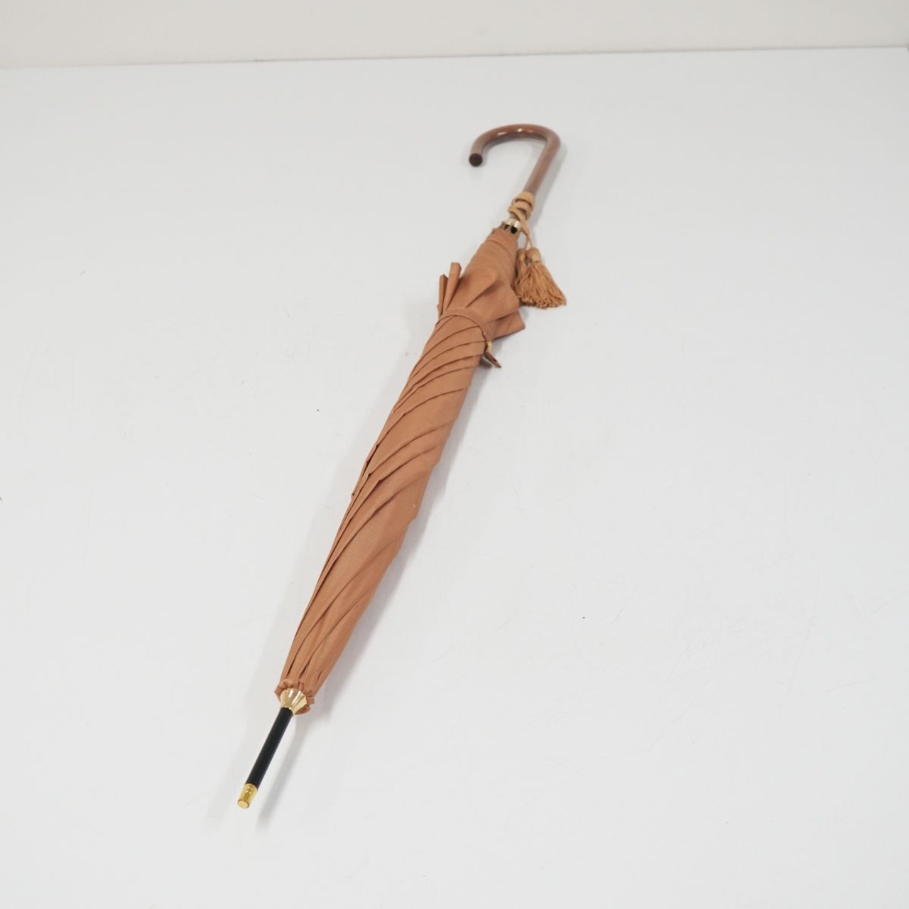 傘 WAKAO ワカオ USED品 シンプル ベージュ 無地 高級 日本製 富士絹 55cm A1373